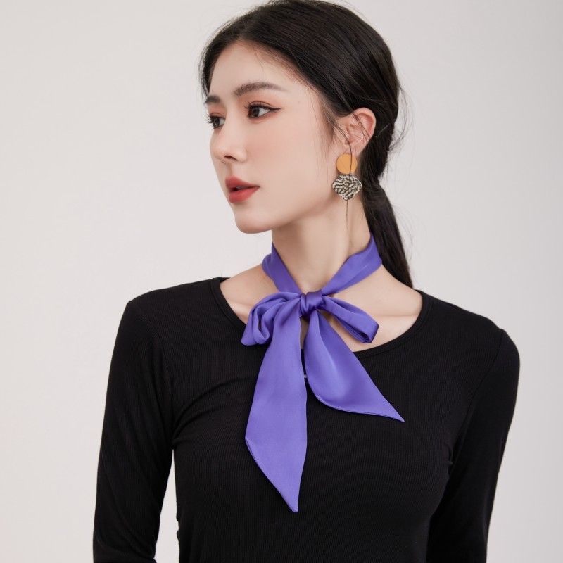 단색 긴 작은 실크 스카프 리본 넥타이 가방 핸들 실크 스카프 넥타이 머리 작은 리본 장식 스카프 머리 선도스토어 가기