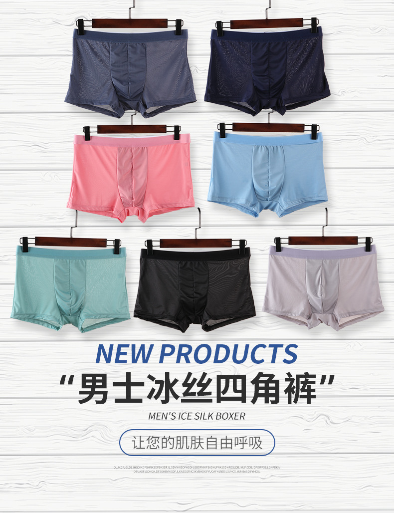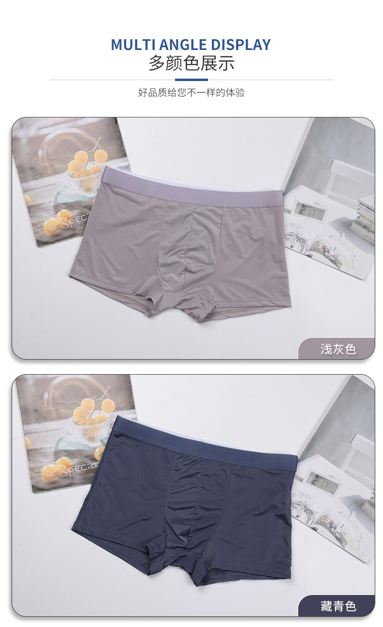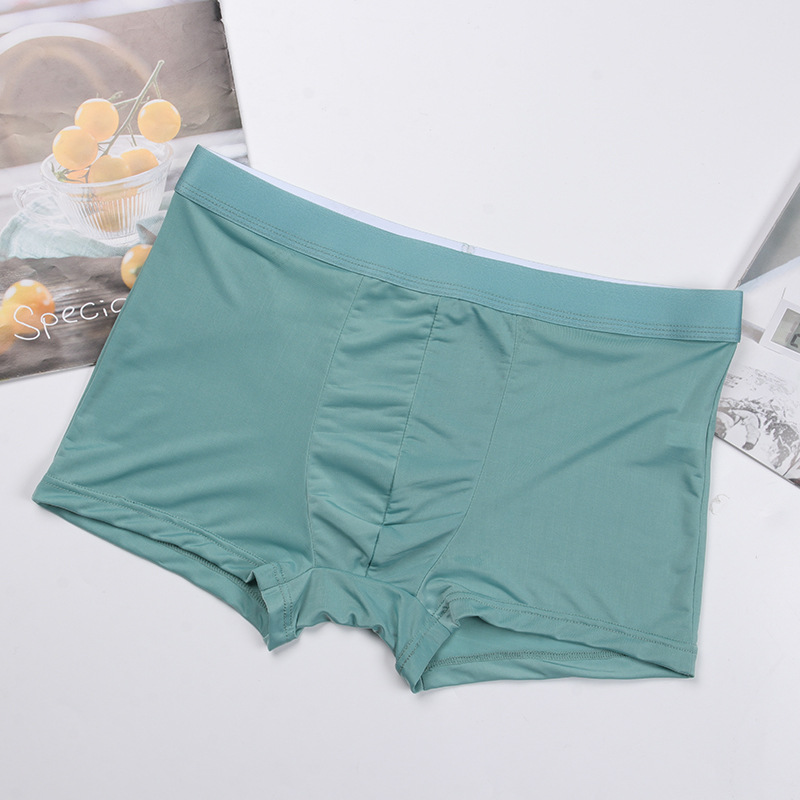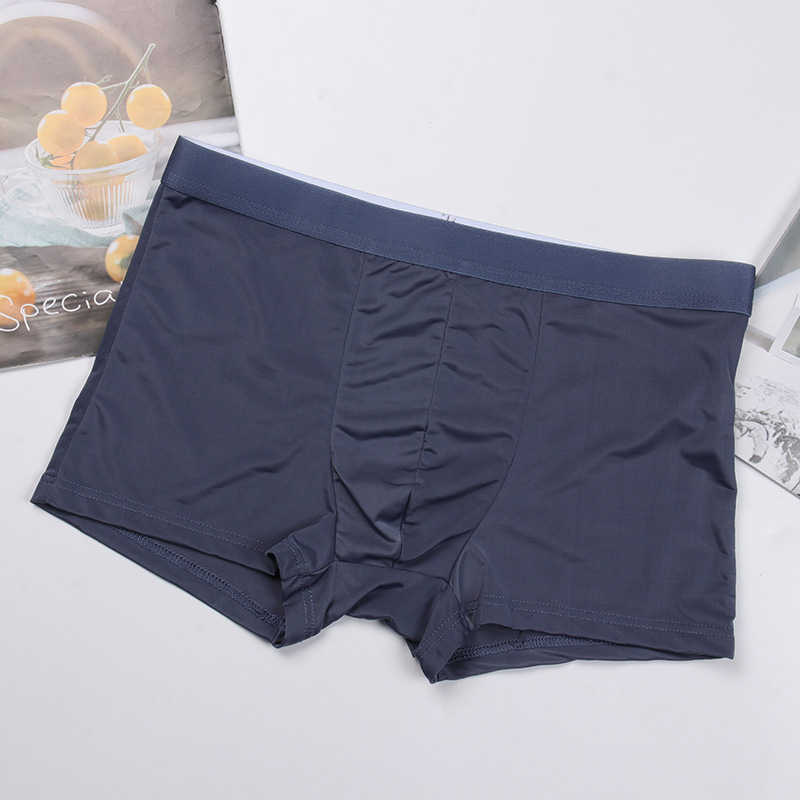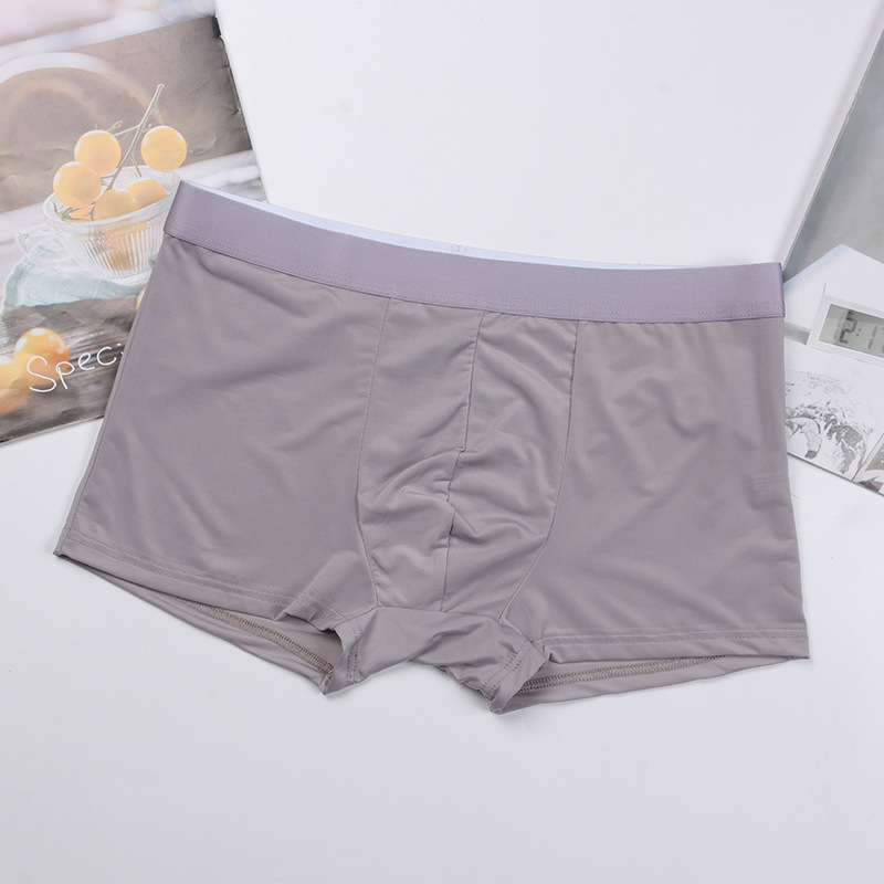 사용자 정의 남성 속옷 아이스 실크 원활한 미드 웨이스트 복서 단색 통기성 속옷 복서 얇은