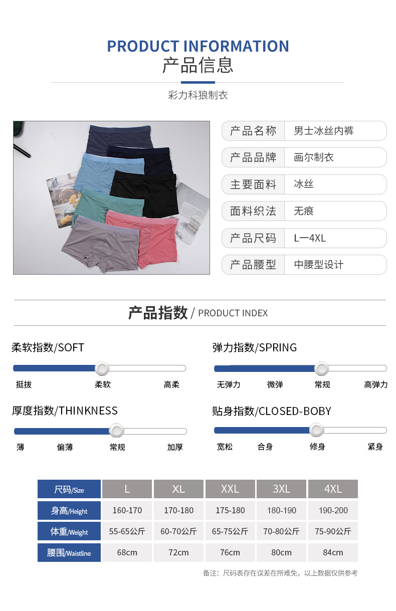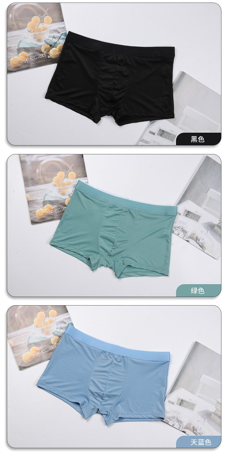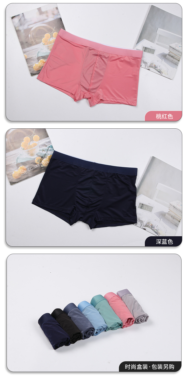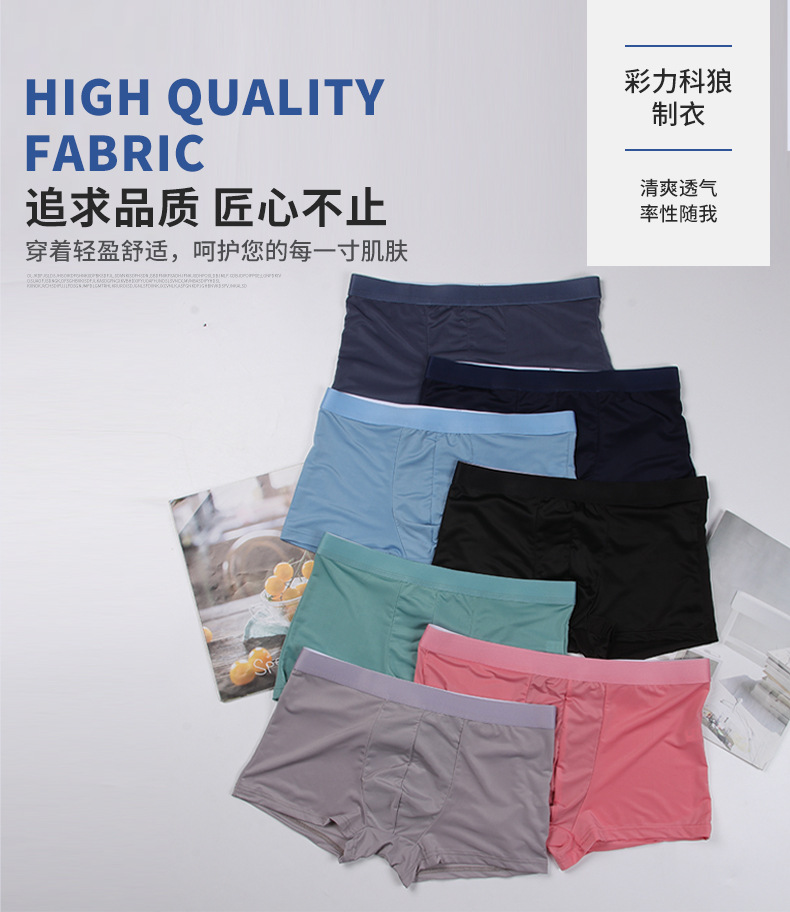 사용자 정의 남성 속옷 아이스 실크 원활한 미드 웨이스트 복서 단색 통기성 속옷 복서 얇은