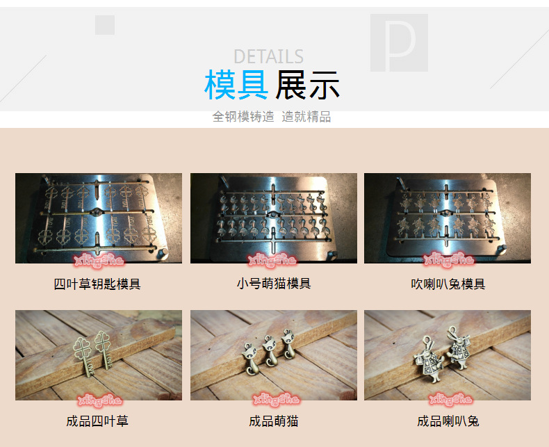 公司主要产品:耳环挂头、吊坠、字牌、时光宝石底托、手链项链配件等。