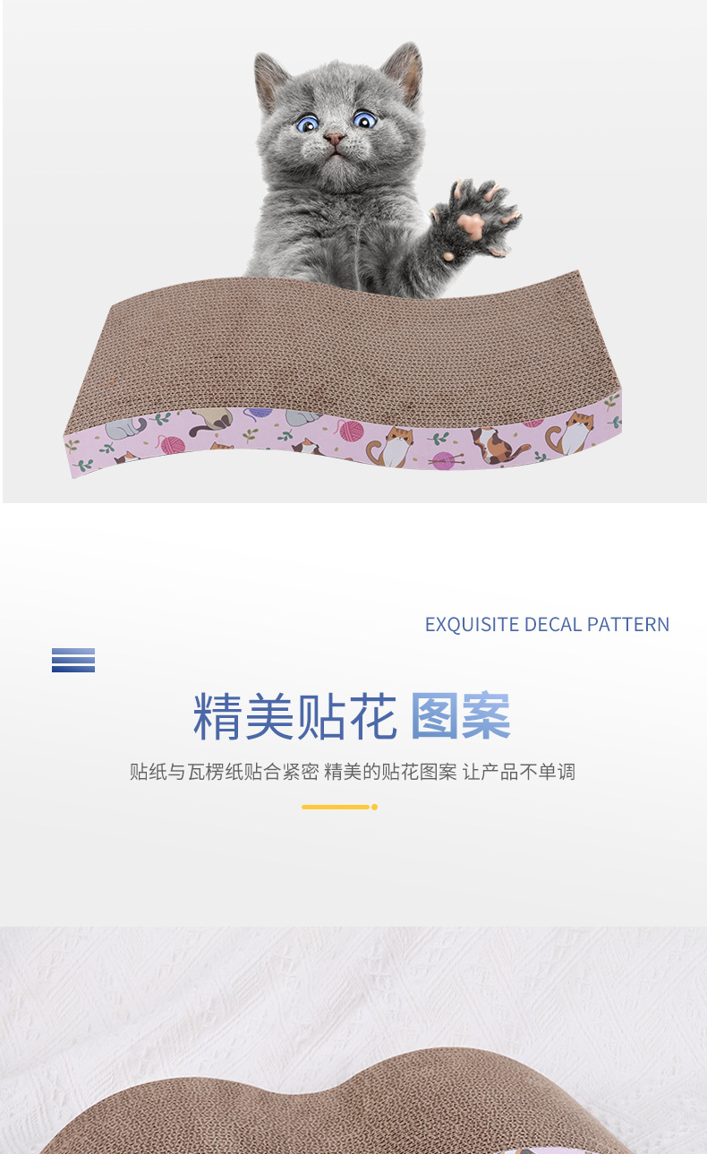 제조업체는 직접 애완 동물 제품 스크래치 방지 발톱 증가 골판지 고양이 스크래치 보드 만화 칩 고양이 장난감 도매