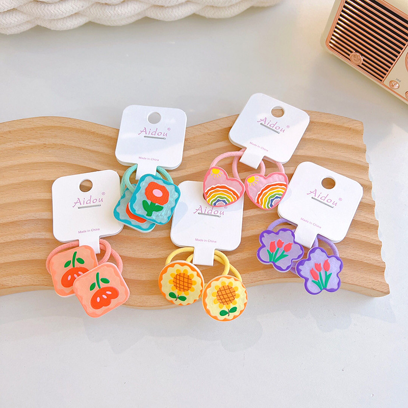 5 쌍 ~ 한국식 헤어 액세서리 아크릴 만화 꽃 헤어 링 어린이 머리 작은 고무 밴드 여아 헤드 로프스토어 가기