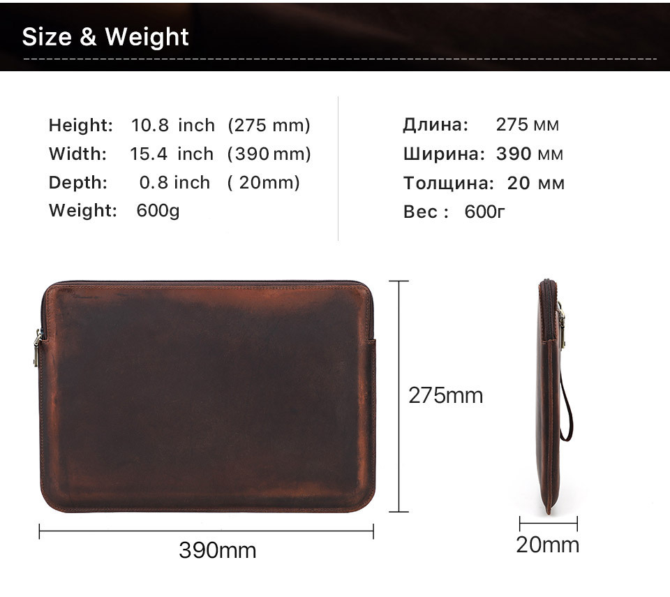 맥북 프로 14 인치 애플 노트북 가방 복고풍 가죽 지퍼 핸드 케이스