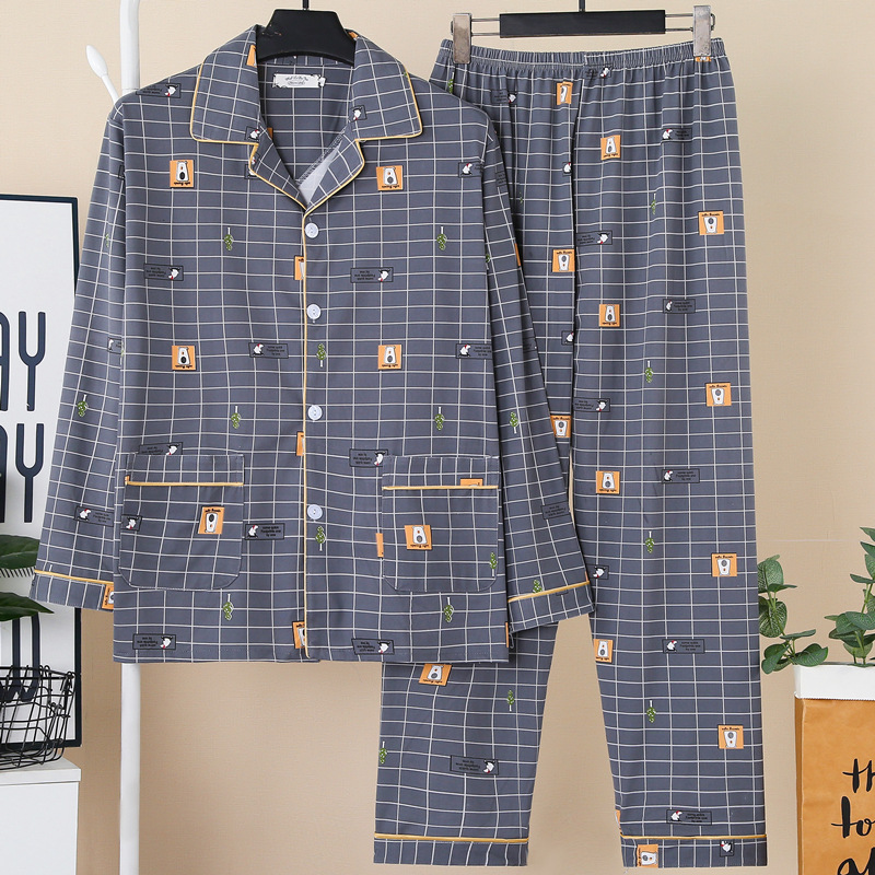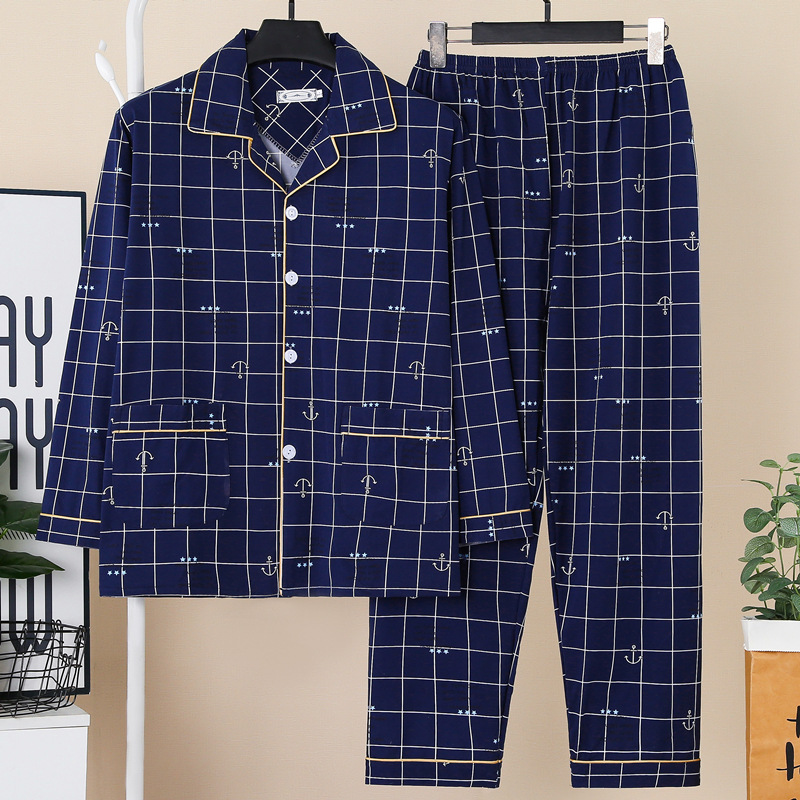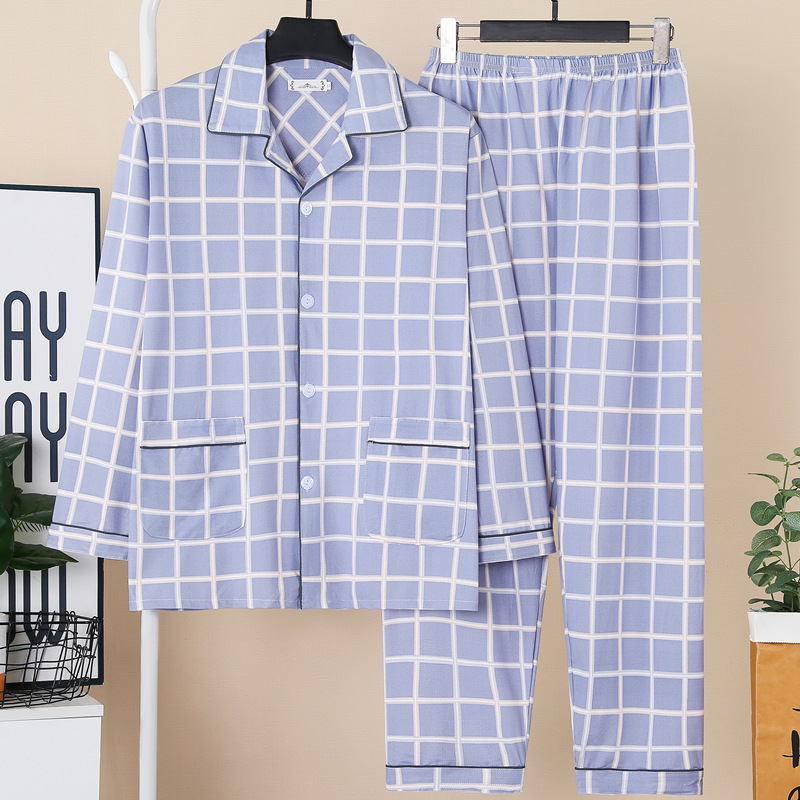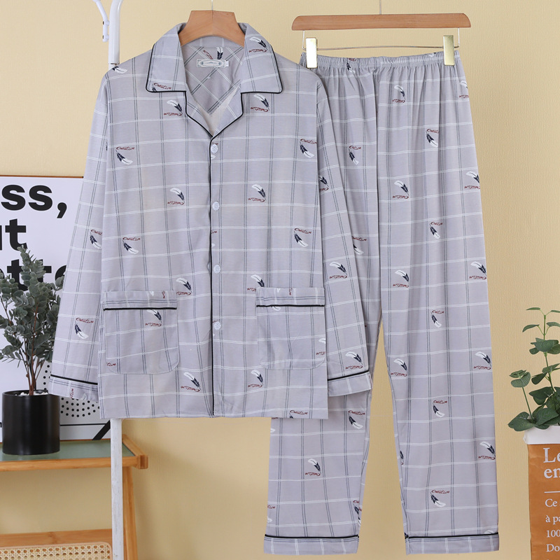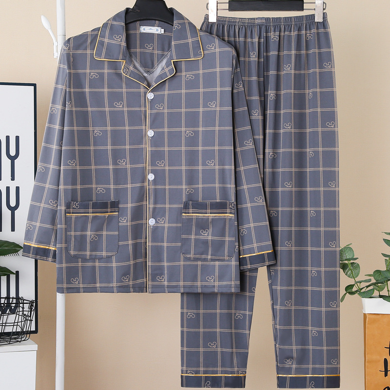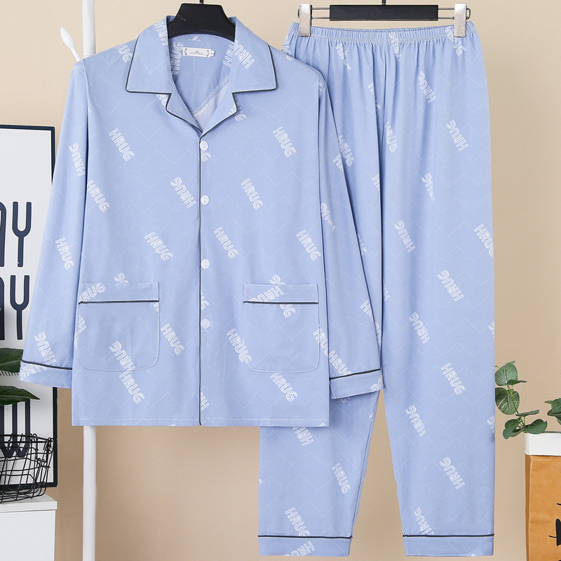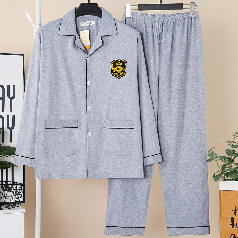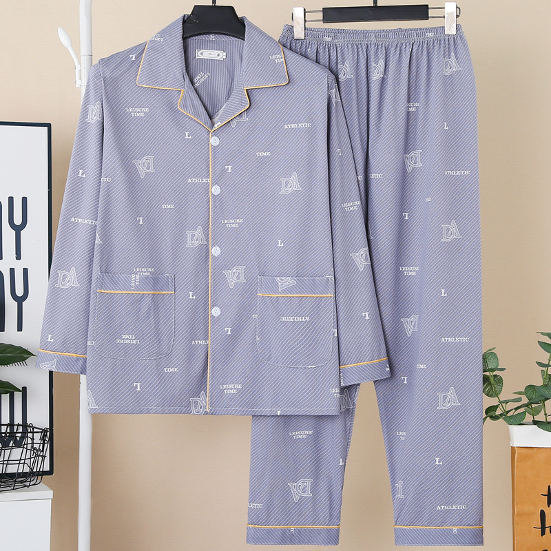 5636 새로운 여름 에어컨 룸 긴팔 면 잠옷 봄과 가을 녹색 중년 남성 가디건 가정복스토어 가기