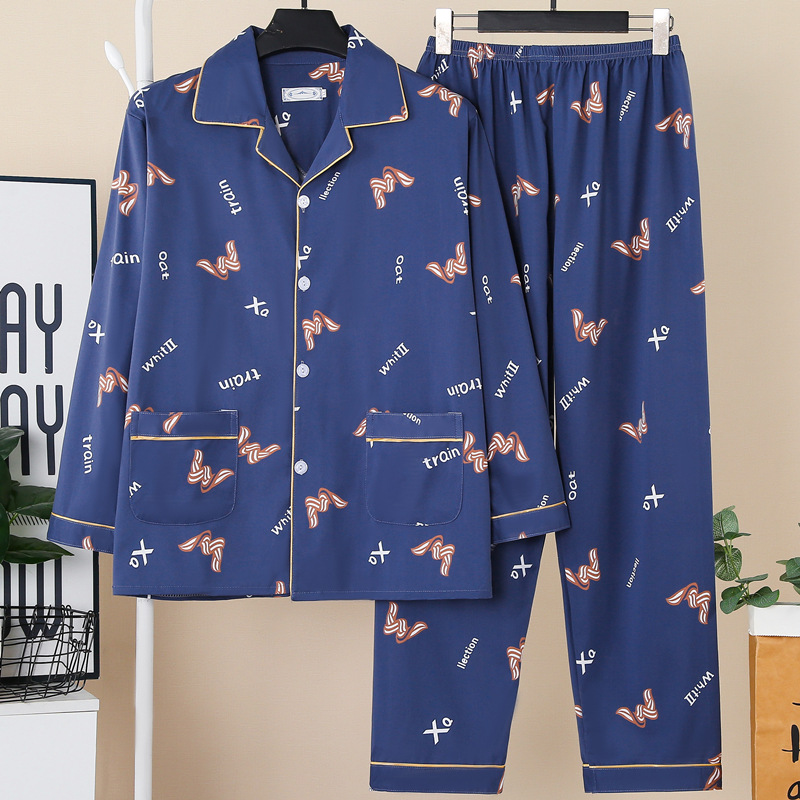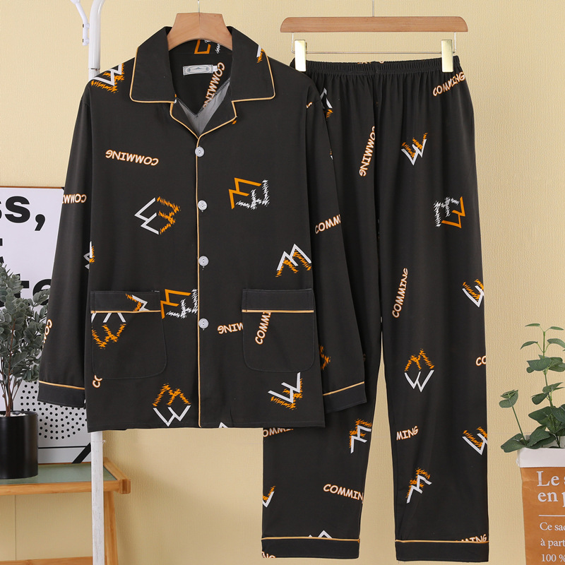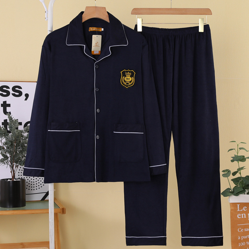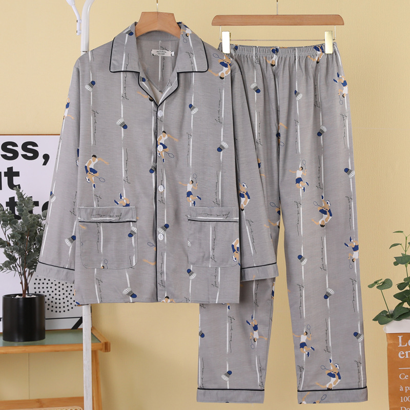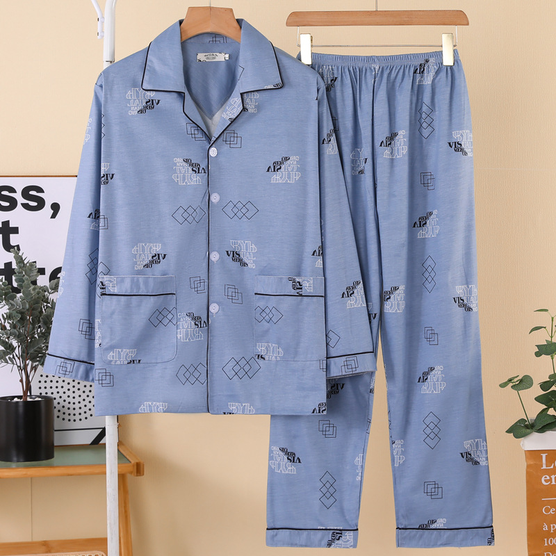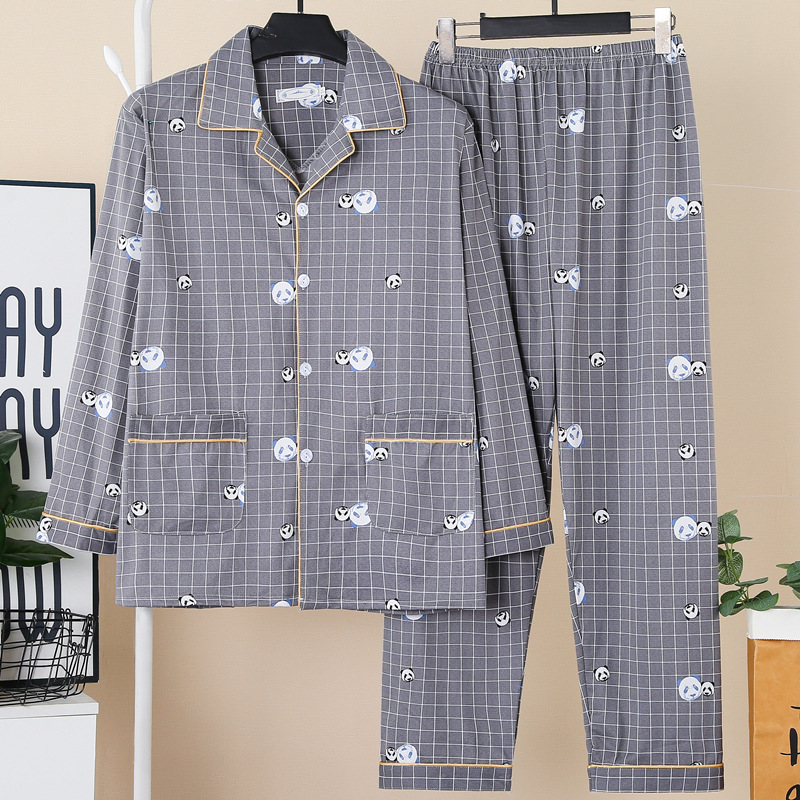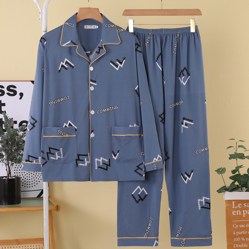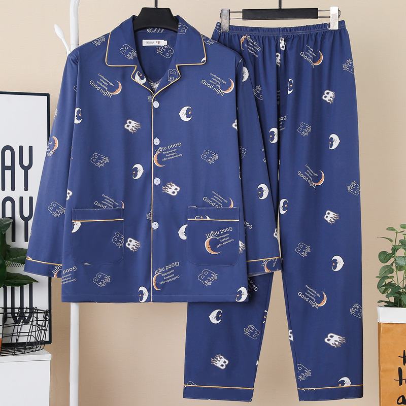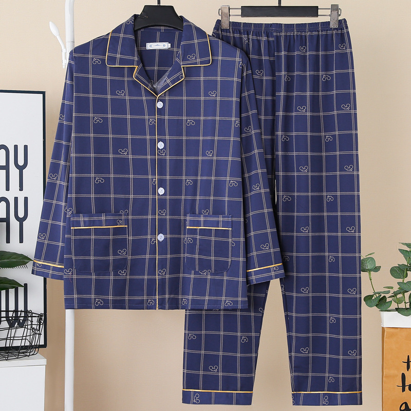 5636 새로운 여름 에어컨 룸 긴팔 면 잠옷 봄과 가을 녹색 중년 남성 가디건 가정복스토어 가기