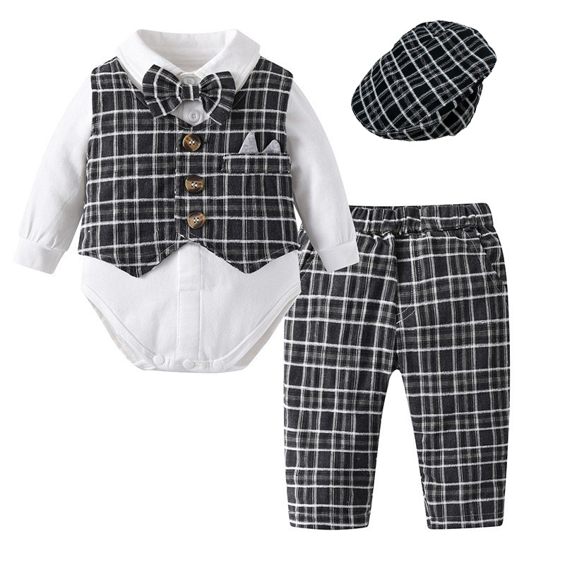 아기 원피스 세트 가을 새 남자 아기 긴팔 가방 뚱뚱한 옷 나비 넥타이 4 피스 세트 유럽과 미국식 1 살 의류스토어 가기