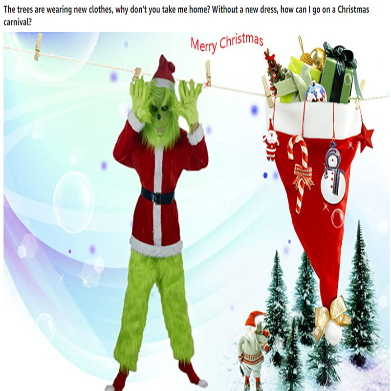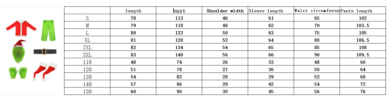 할로윈 크로스-국경 성인 어린이 녹색 머리 괴물 그린치 코스프레 산타 클로스 헤어 바지 세트 놀이 원피스스토어 가기