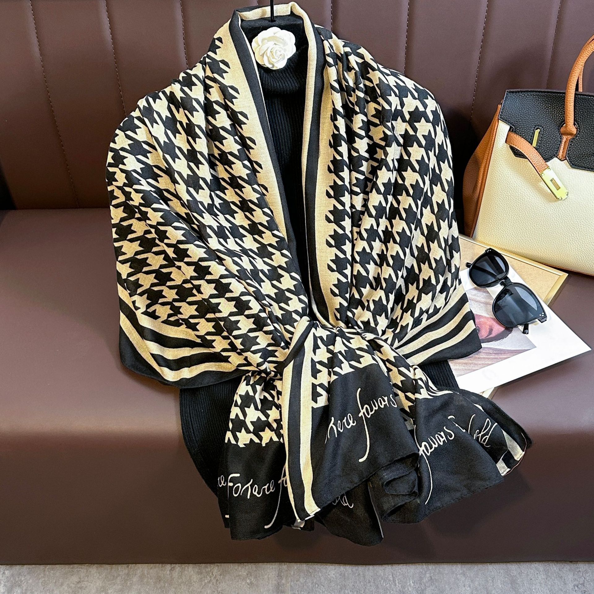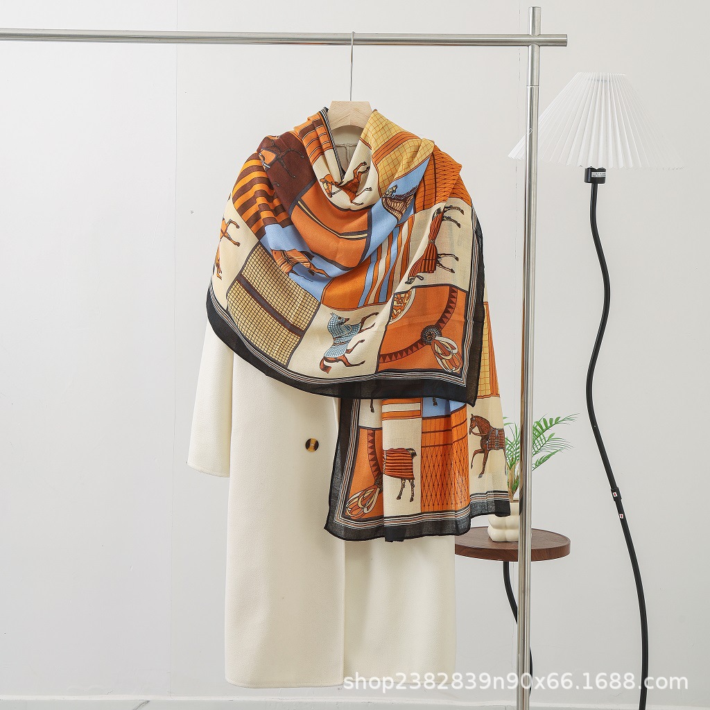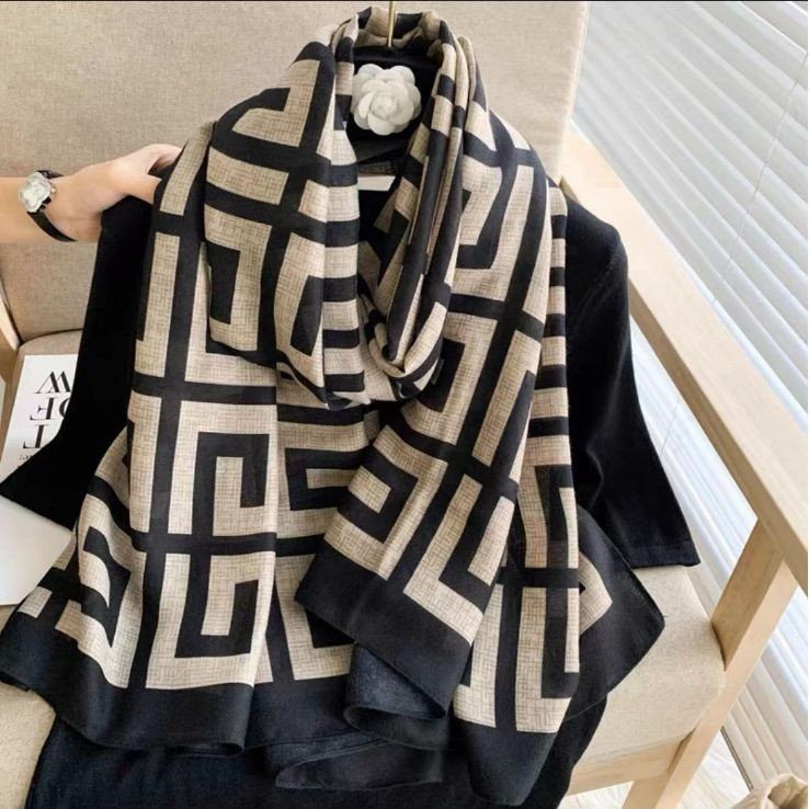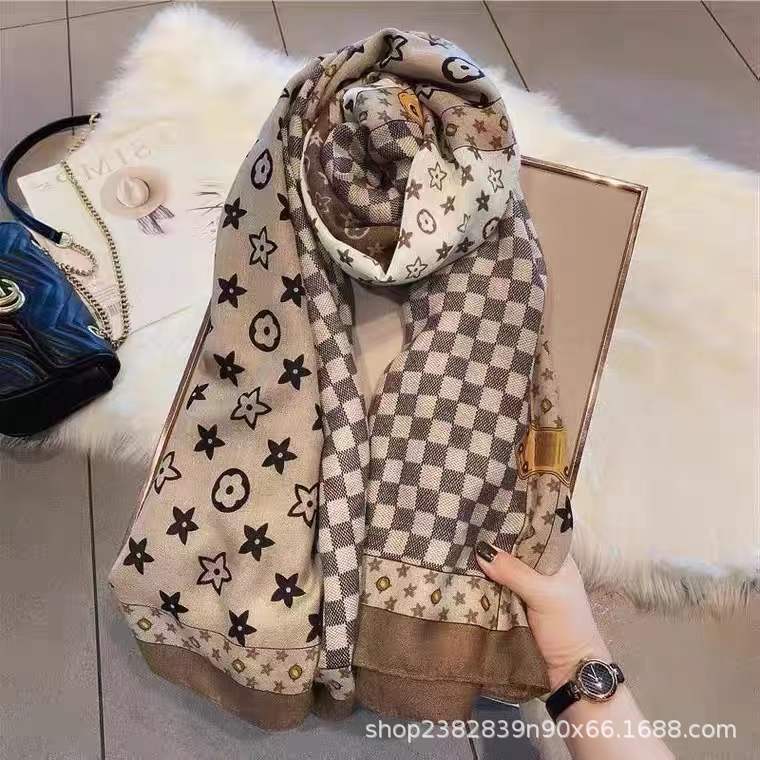 드롭쉬핑 2025 라이브 방송 한국판 프린트 면 및 린넨 스카프 유럽과 미국의 클래식 가을 겨울 따뜻한 스카프와 숄