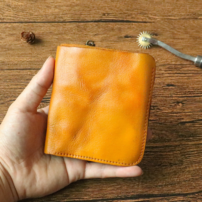 새로운 1 층 소 가죽 지갑 남성 복고풍 2 배 짧은 지퍼 지갑 주름 수제 고민 소 가죽 지갑스토어 가기
