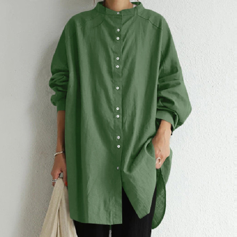2025 가을, 겨울 레트로 스탠드 칼라 싱글 브레스트 긴팔 셔츠 캐주얼 루즈 솔리드 컬러 코튼 린넨 바닥 셔츠 여성 6 색스토어 가기