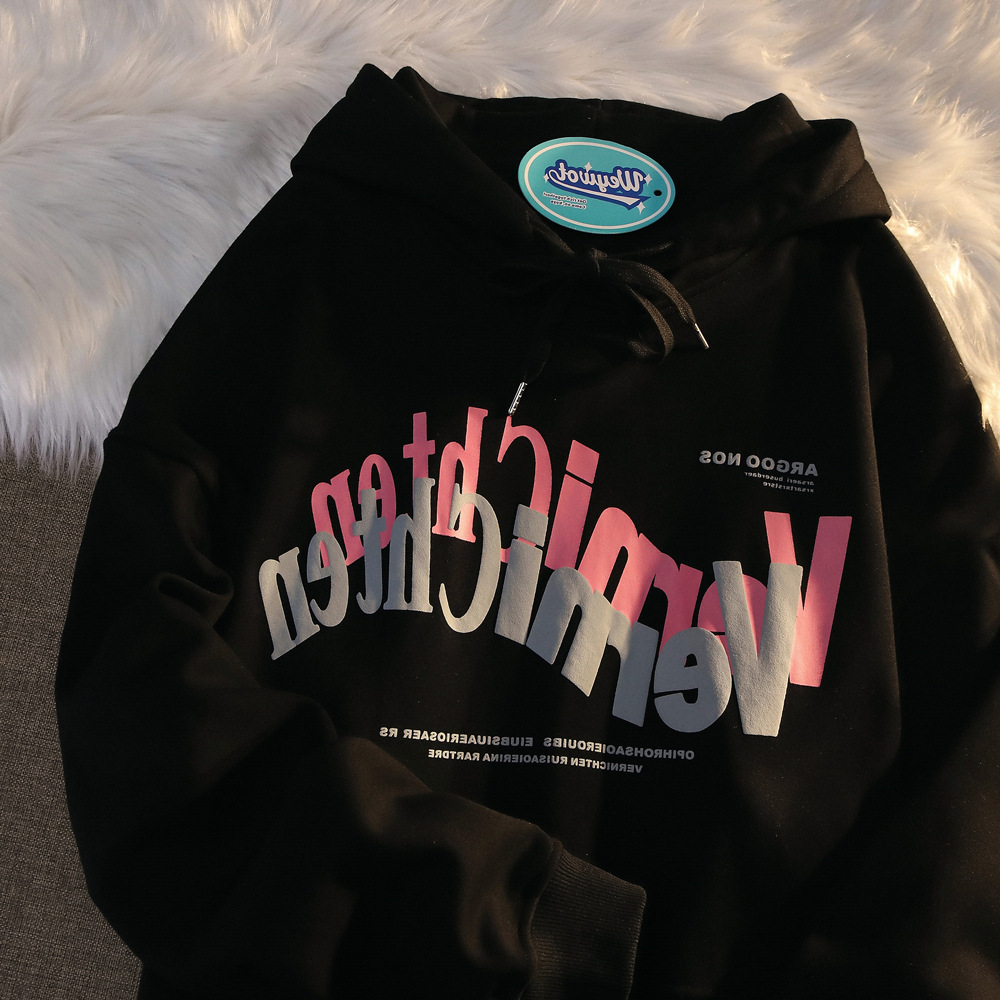 여성용 후드 티셔츠 2025 한국 스타일 국경 새 편지 인쇄 느슨한 긴팔 탑 학생 풀오버 자켓 유행
