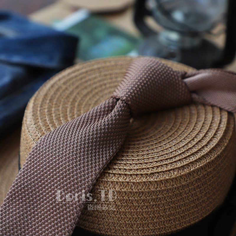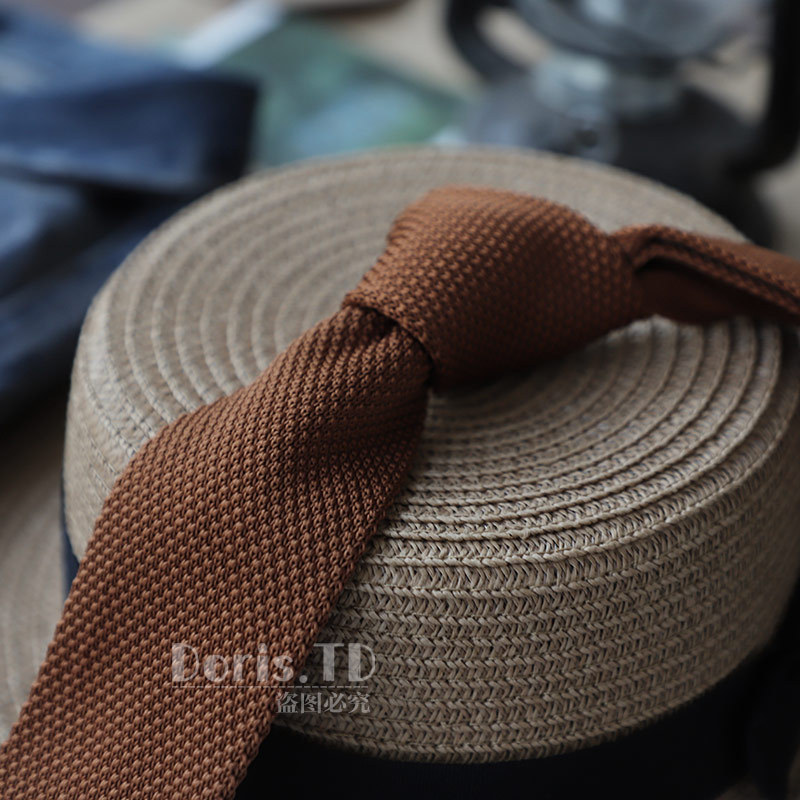 공장 도매 복고풍 스타일 단색 다크 브라운 니트 넥타이 남자의 한국 캐주얼 플랫 헤드 조커스토어 가기