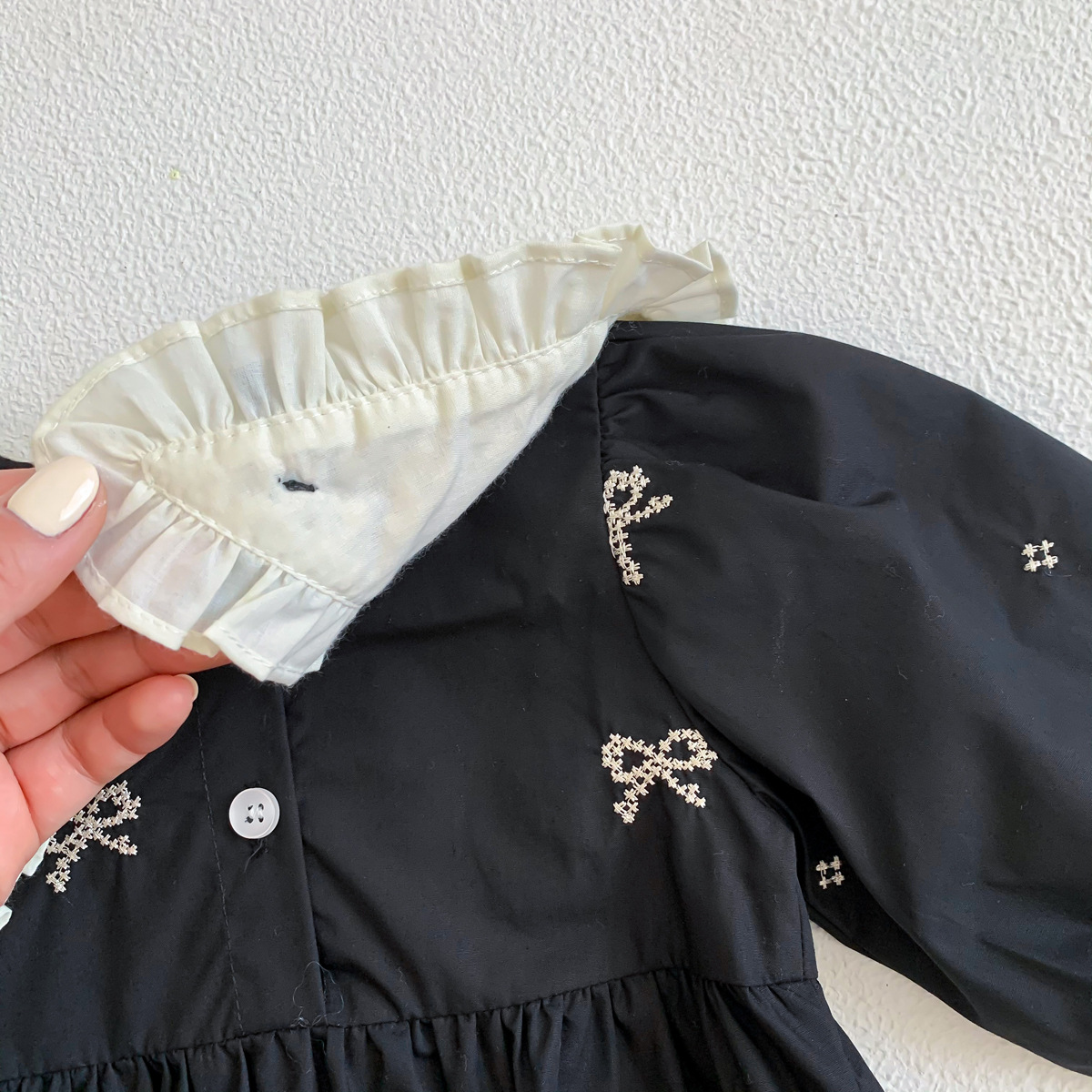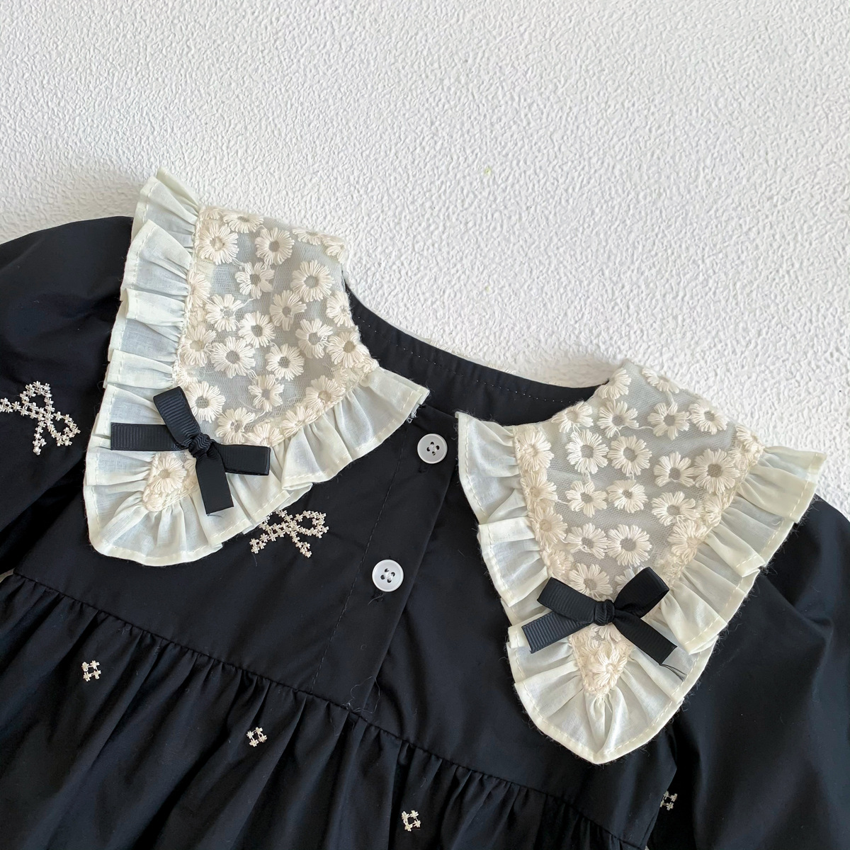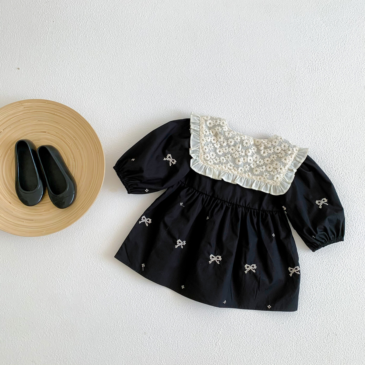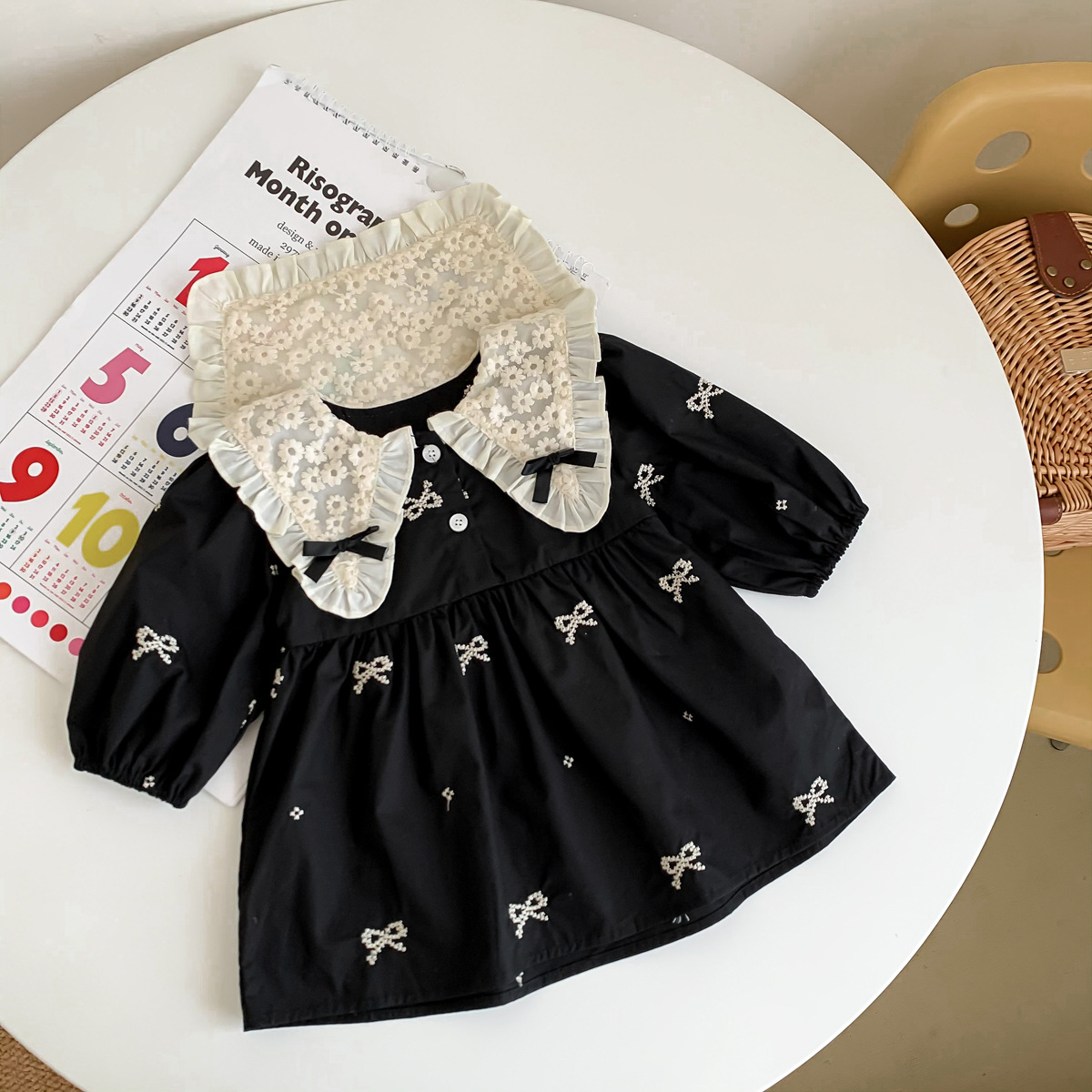 한국어 버전 가을 한국 스타일 소녀의 세련된 대형 옷깃 가방 방귀 옷 아기 아기 활 수 놓은 자매 옷 크롤링 옷스토어 가기