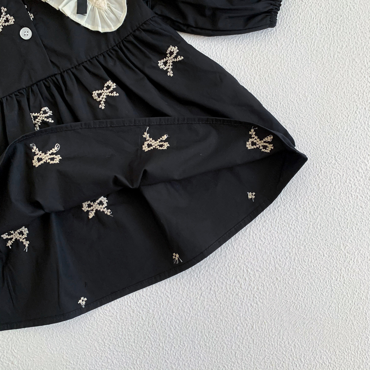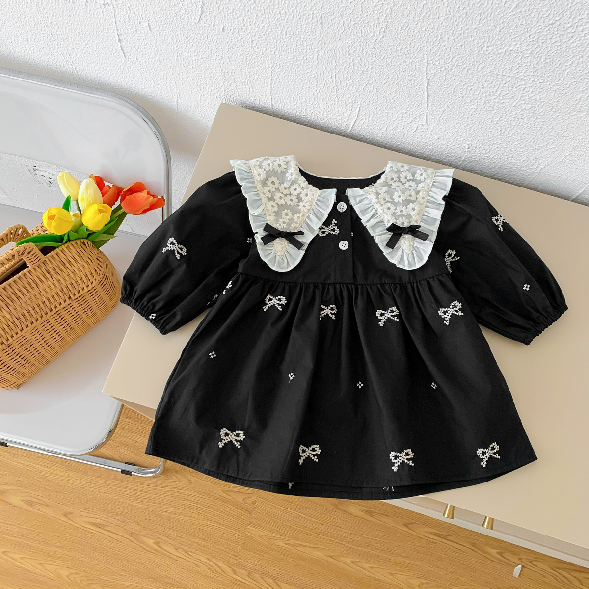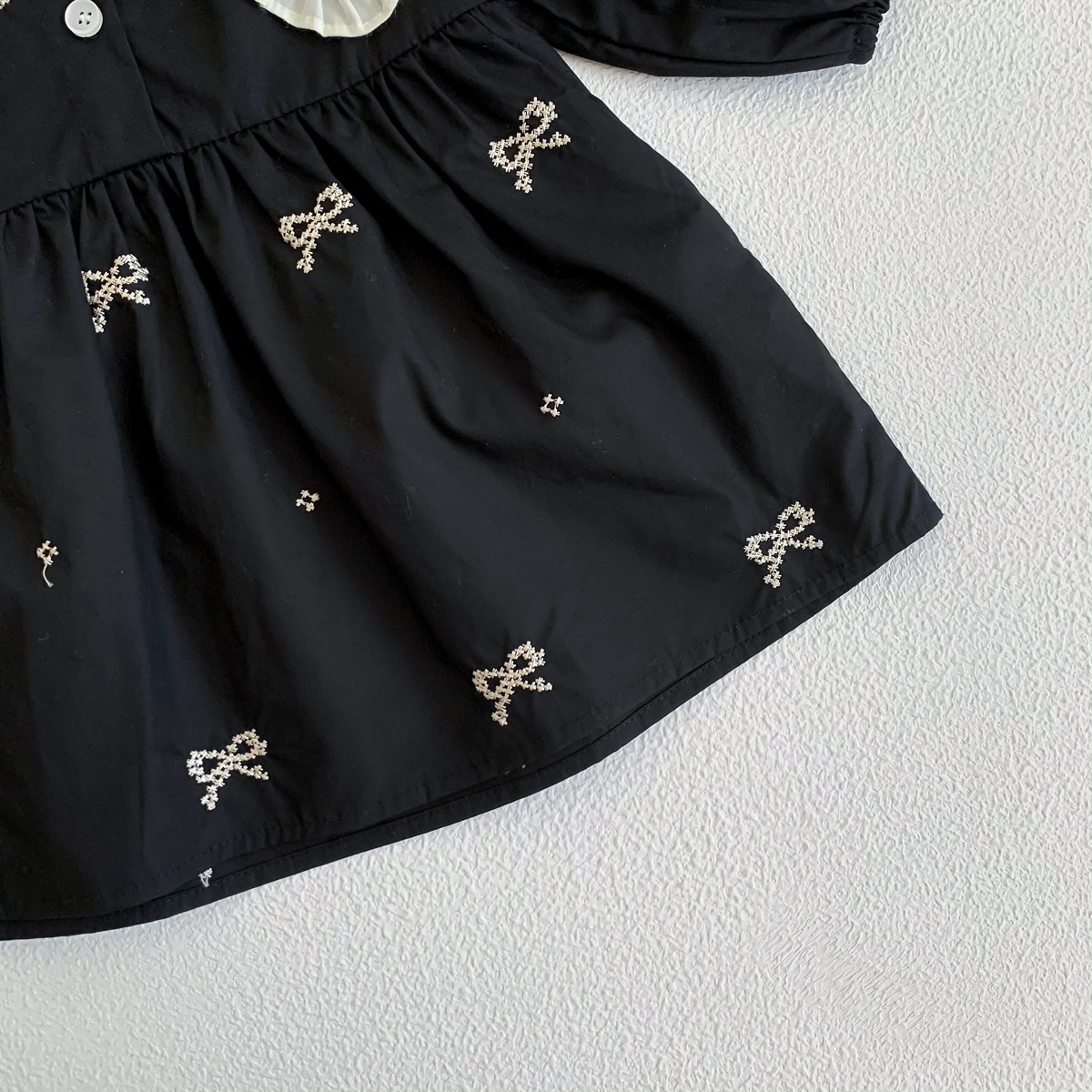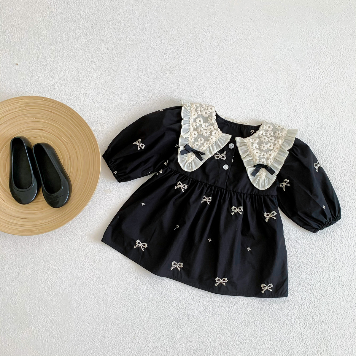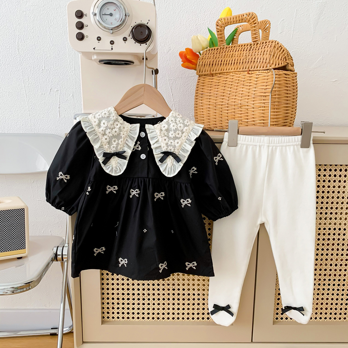 한국어 버전 가을 한국 스타일 소녀의 세련된 대형 옷깃 가방 방귀 옷 아기 아기 활 수 놓은 자매 옷 크롤링 옷스토어 가기