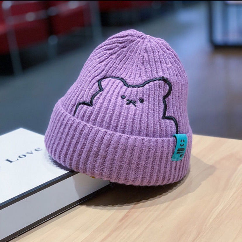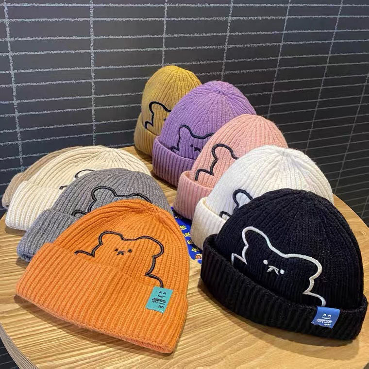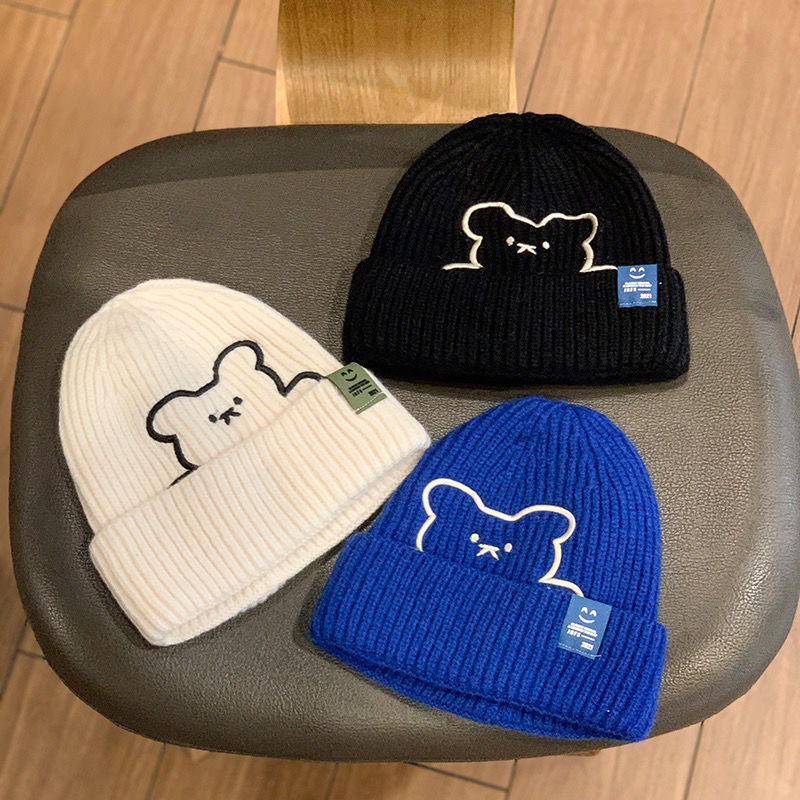 라이브 부모-자식 모자 어린이 아기 곰 남자와 여자의 양모 모자 소년 가을과 겨울 따뜻한 학생 만화 니트 모자스토어 가기