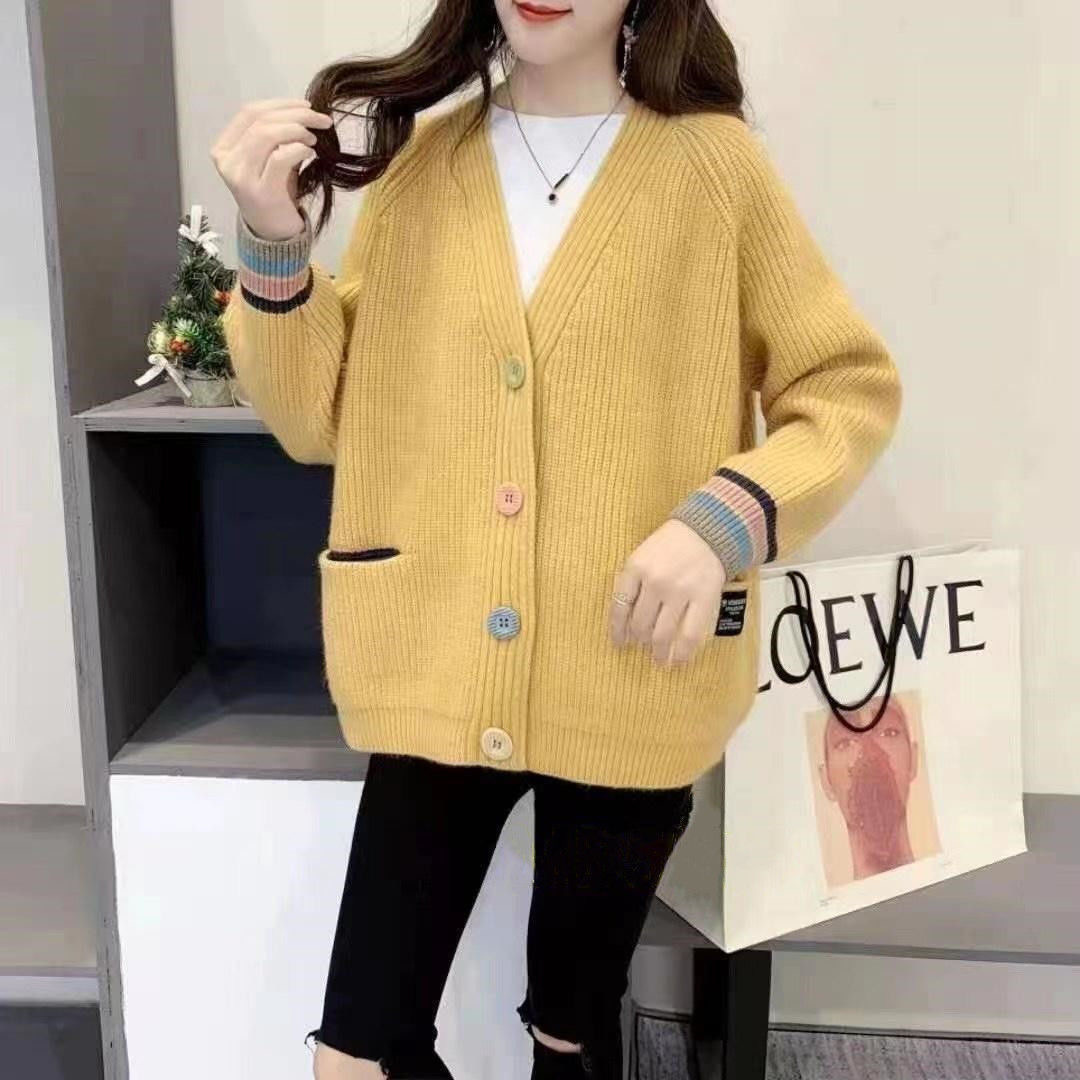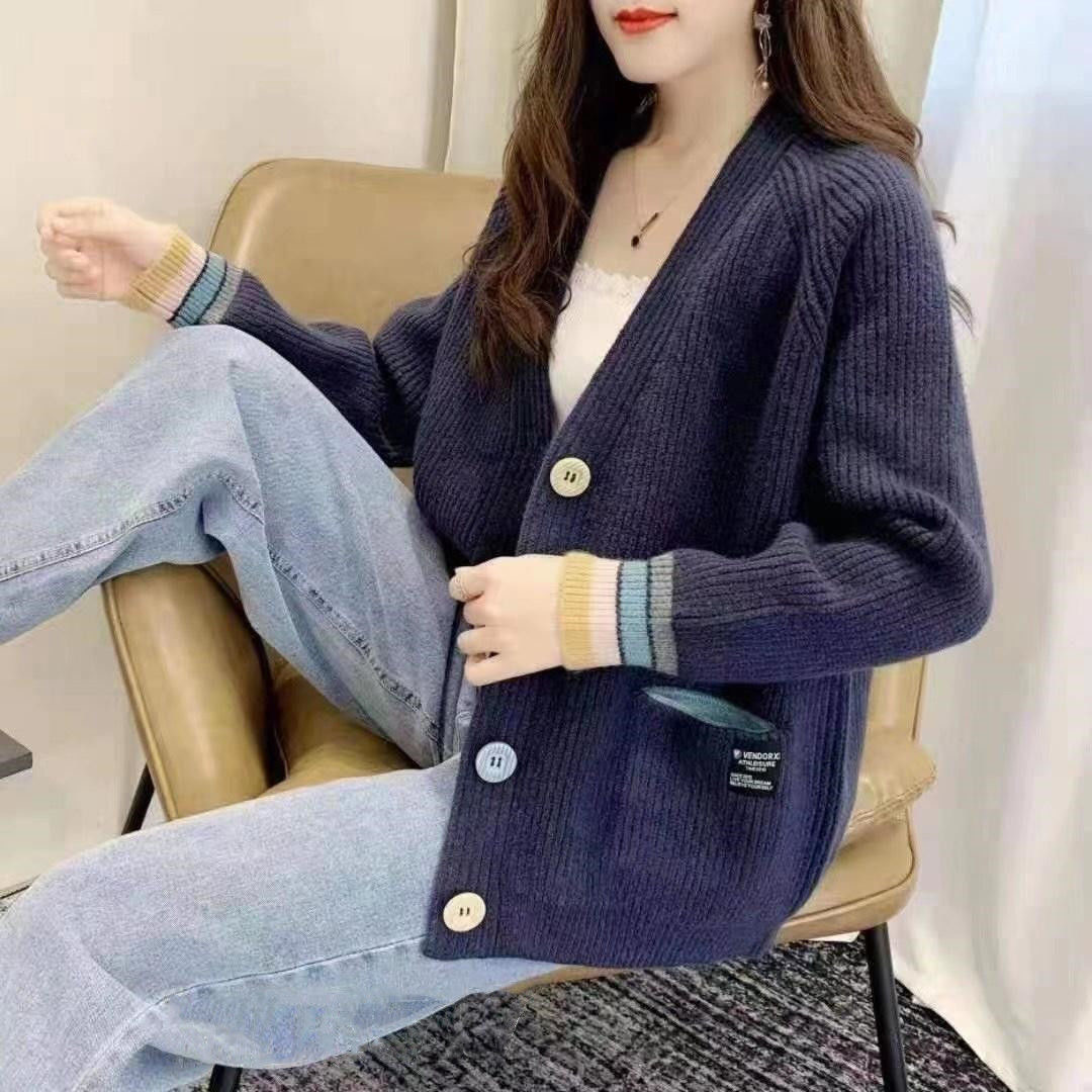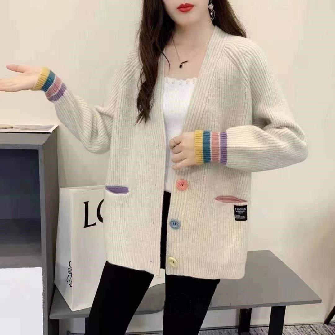 다채로운 버클 컬러 매칭 모든 매치 스웨터 여성 코트 2023 가을과 겨울 새로운 한국 스타일 느슨한 신선한 니트 가디건스토어 가기