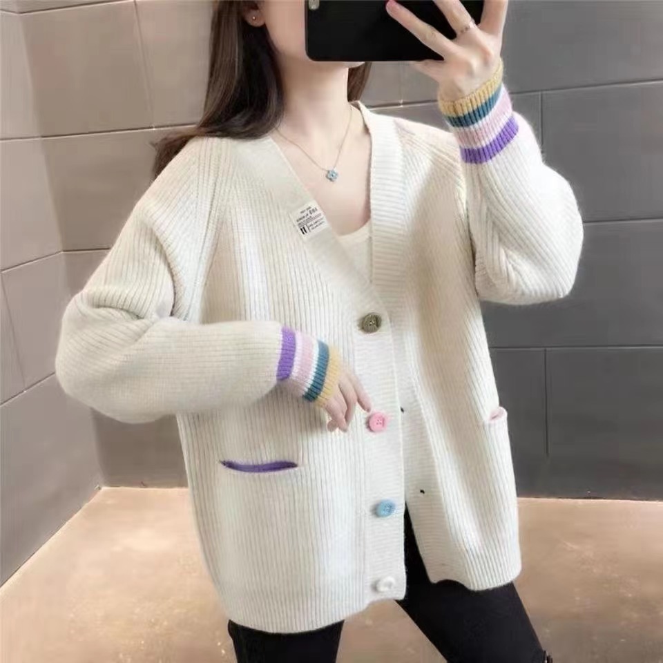 다채로운 버클 컬러 매칭 모든 매치 스웨터 여성 코트 2023 가을과 겨울 새로운 한국 스타일 느슨한 신선한 니트 가디건