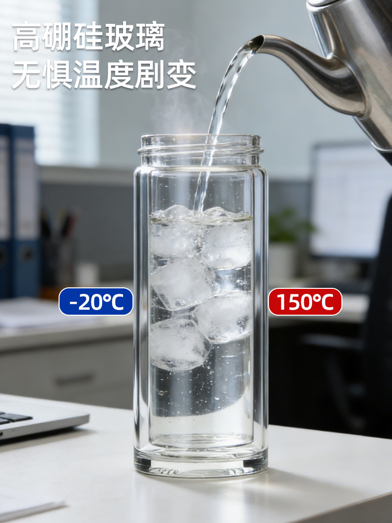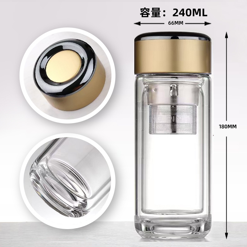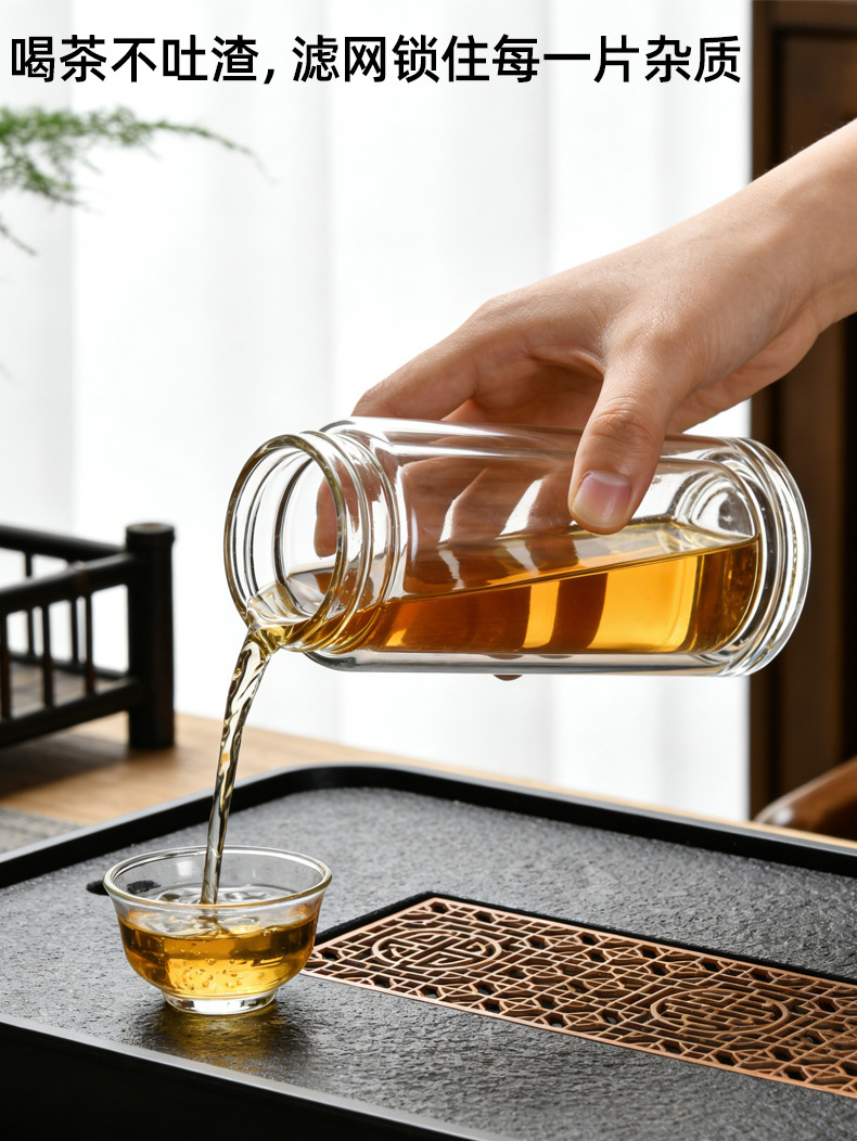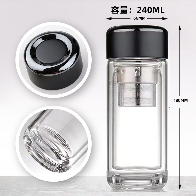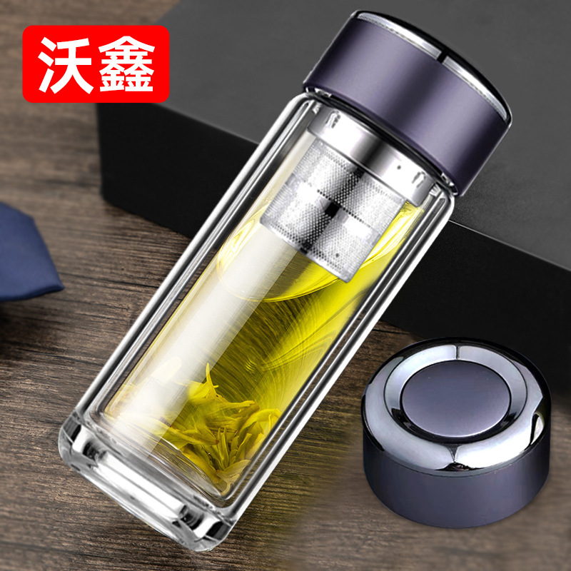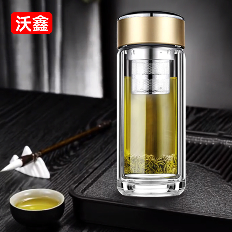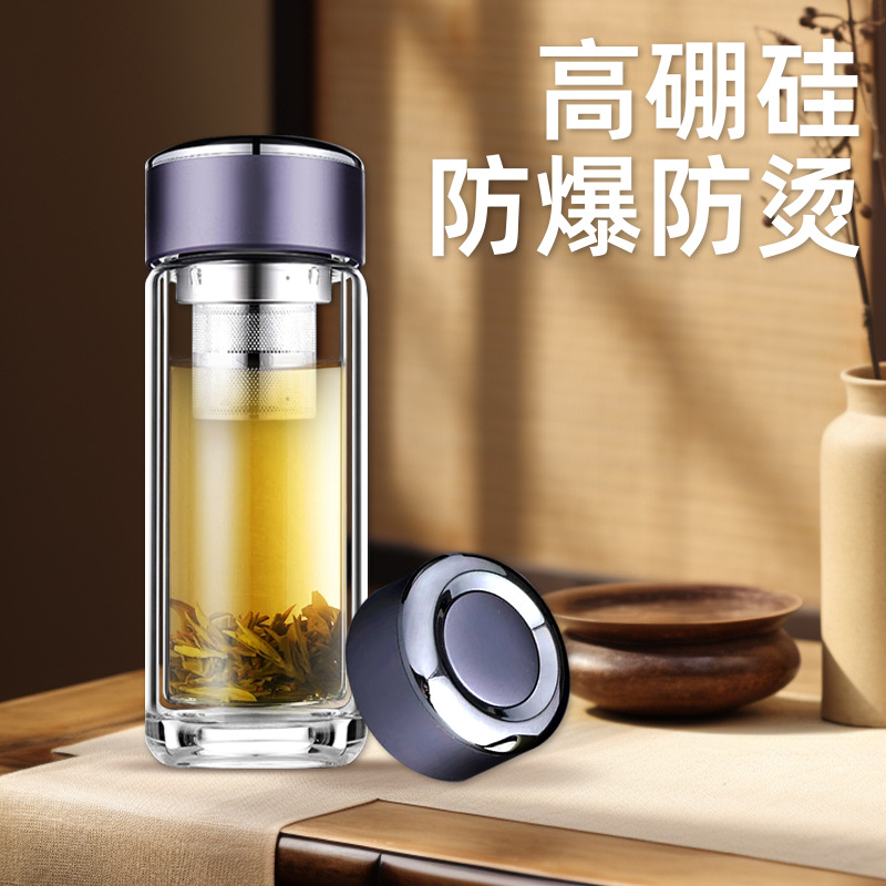 범용 고급스러운 이중층 차와 물 분리 유리컵 고붕규산 유리컵 단열 고온 저항 도매 선물