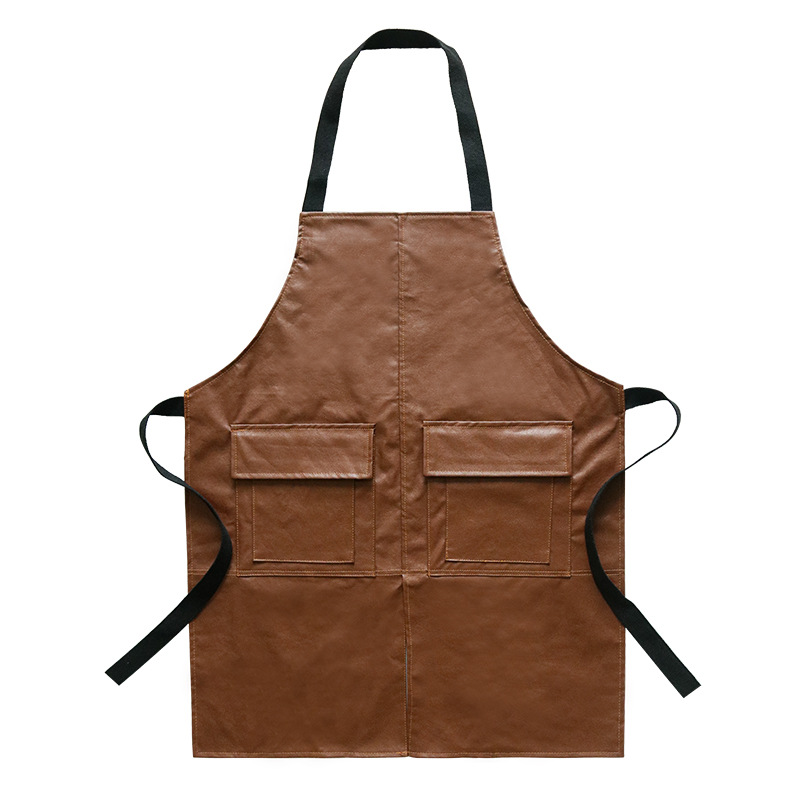 북유럽 스타일 앞치마 방수 및 내유성 가정용 주방 남성과 여성의 패션 Pu 가죽 레스토랑 커피 숍 작업 앞치마 인쇄