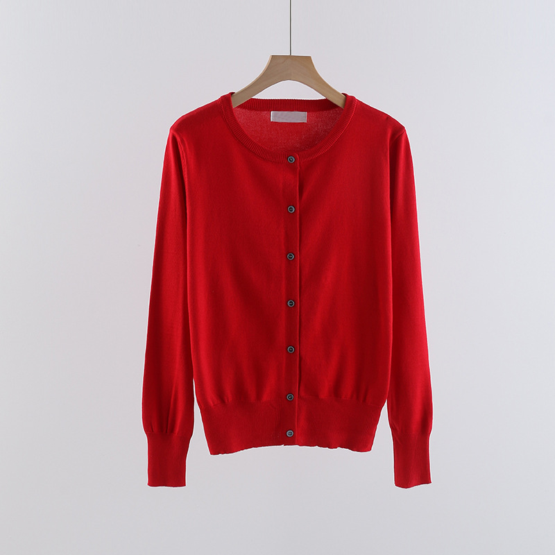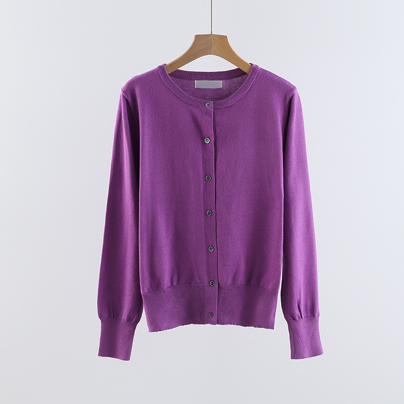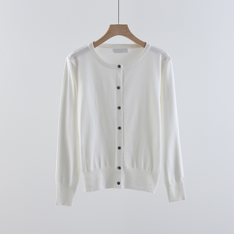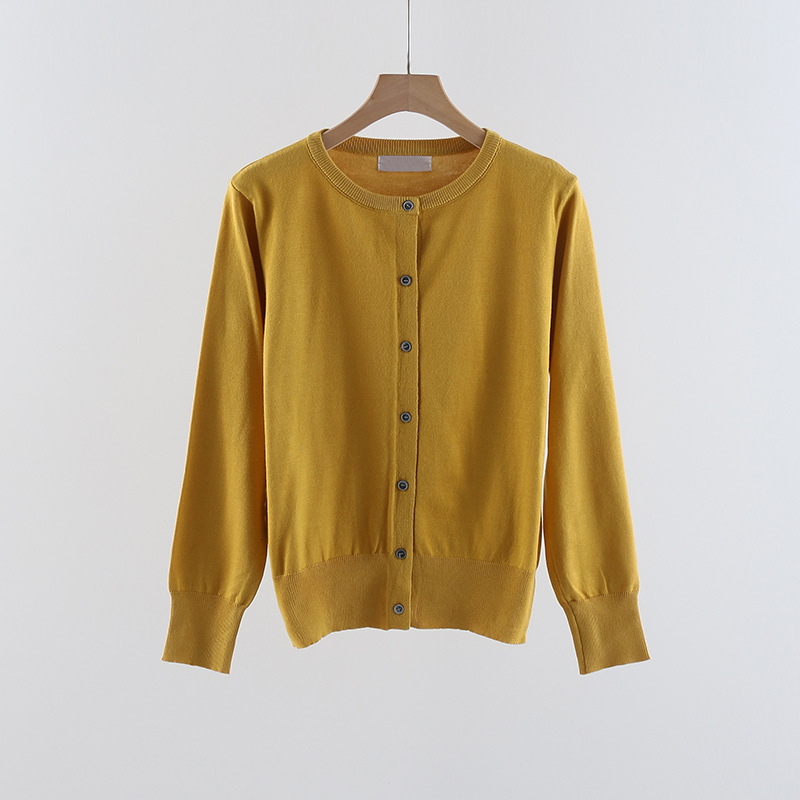 봄과 가을 새로운 여성용 라운드 넥 카디건 얇은 솔리드 컬러 여성용 루즈한 니트 셔츠 논필링 달콤한 한국 스타일 코트스토어 가기