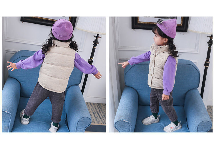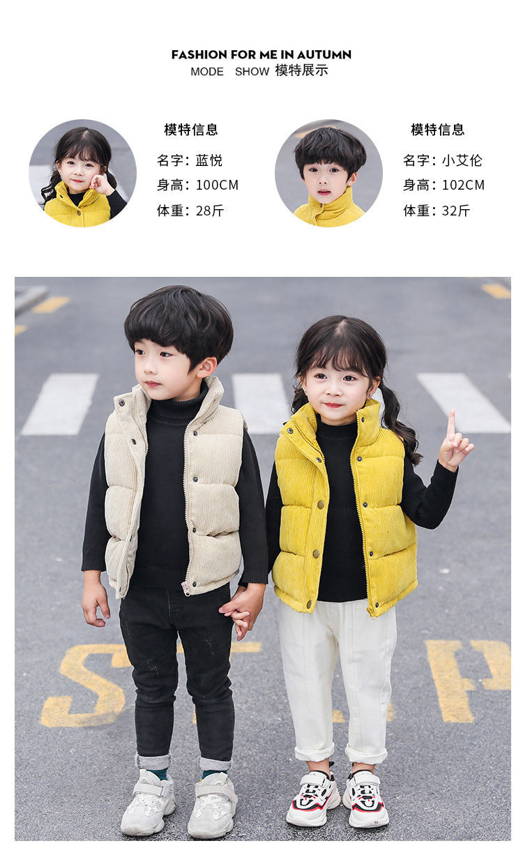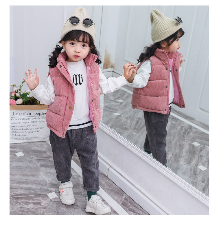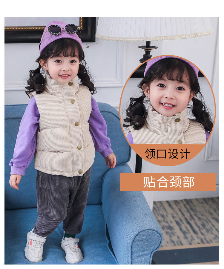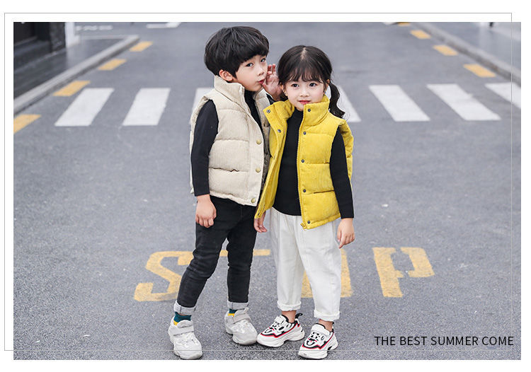 대외 무역 중소 소년 소녀를위한 어린이 다운 면 조끼의 새로운 한국어 버전 아기 착용 두꺼운 따뜻한 면 조끼스토어 가기