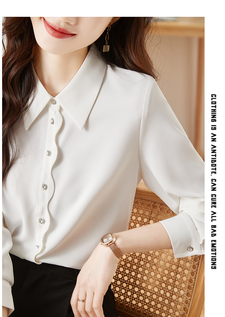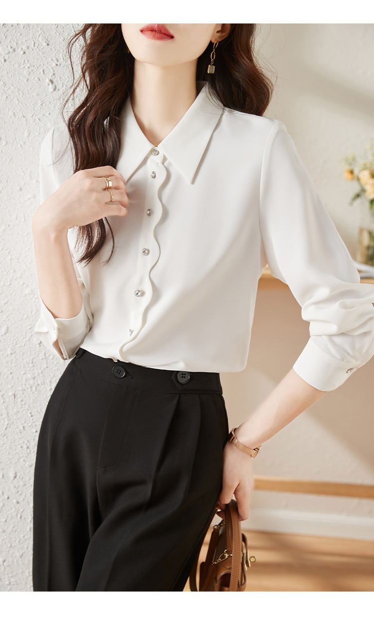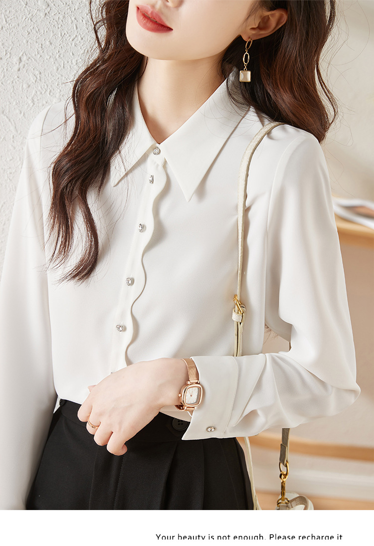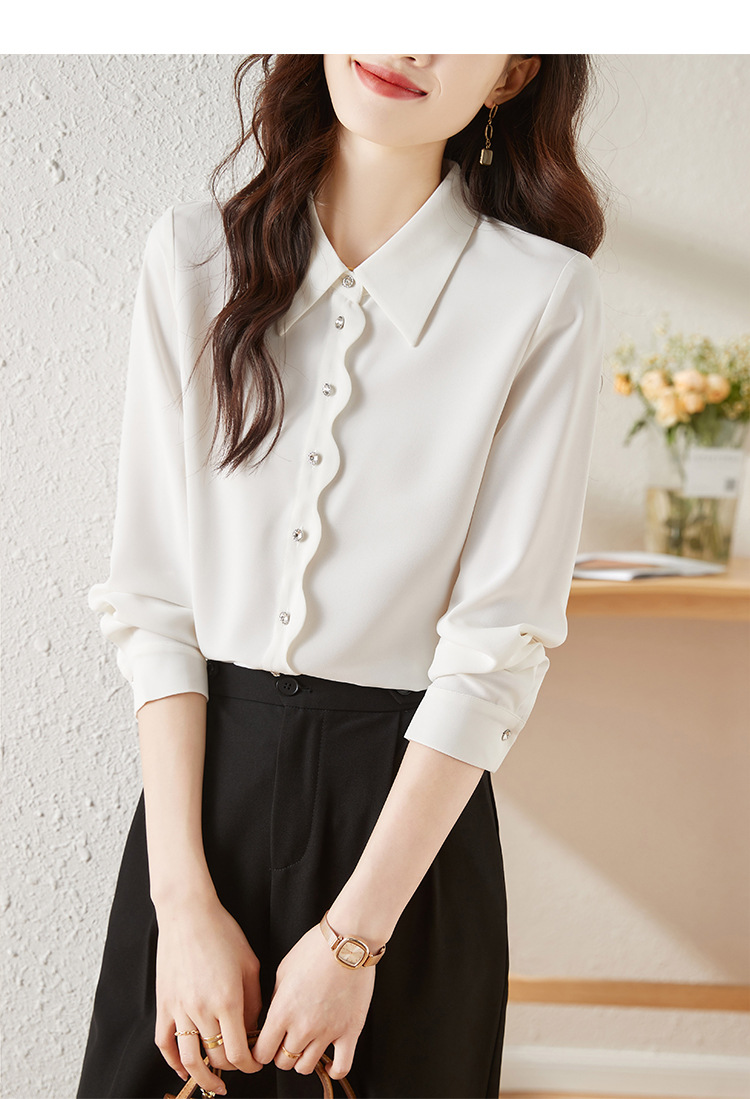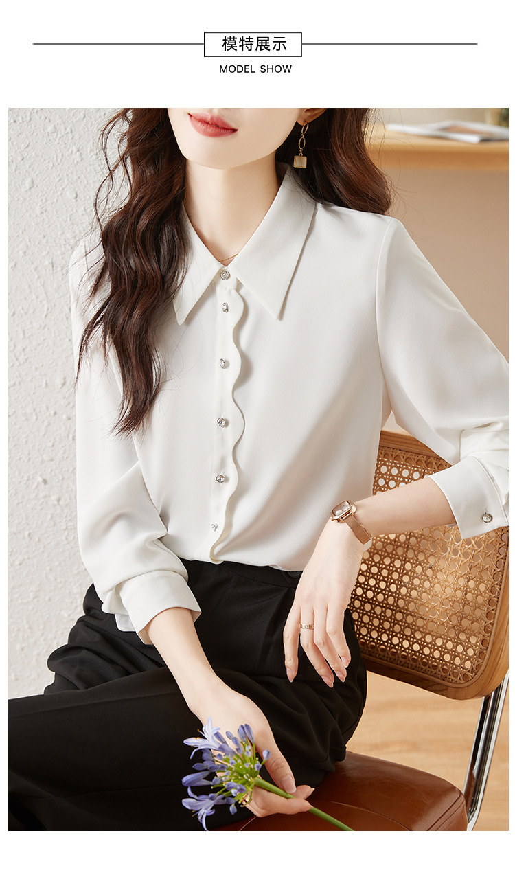 긴 소매 쉬폰 화이트 셔츠 여성의 가을 새로운 디자인 감각 틈새 우아한 통근 시크 셔츠스토어 가기