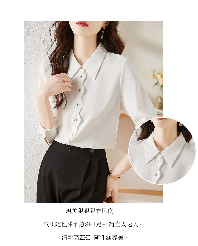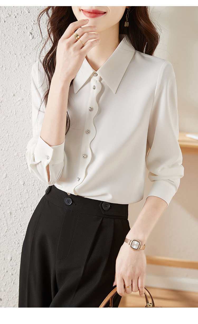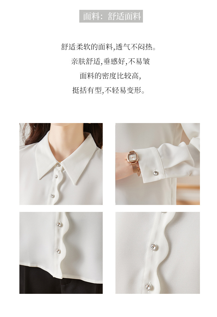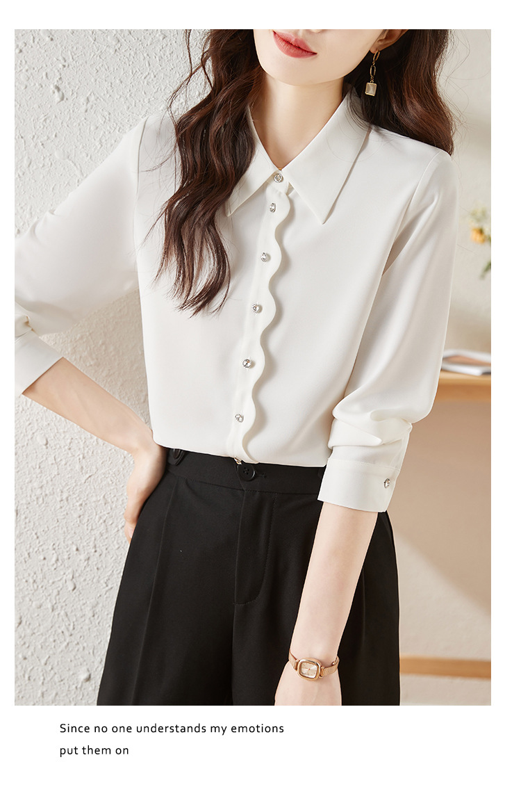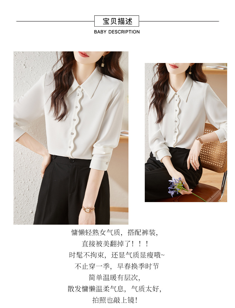 긴 소매 쉬폰 화이트 셔츠 여성의 가을 새로운 디자인 감각 틈새 우아한 통근 시크 셔츠스토어 가기