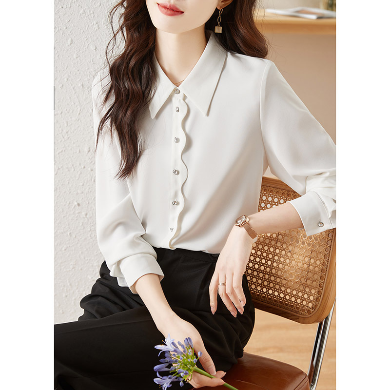 긴 소매 쉬폰 화이트 셔츠 여성의 가을 새로운 디자인 감각 틈새 우아한 통근 시크 셔츠