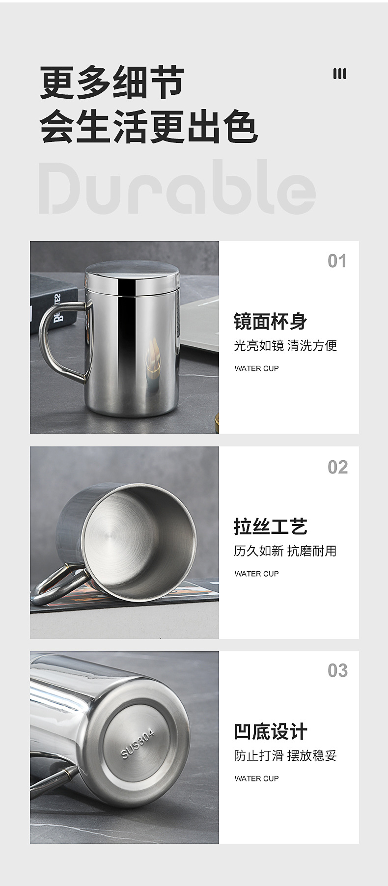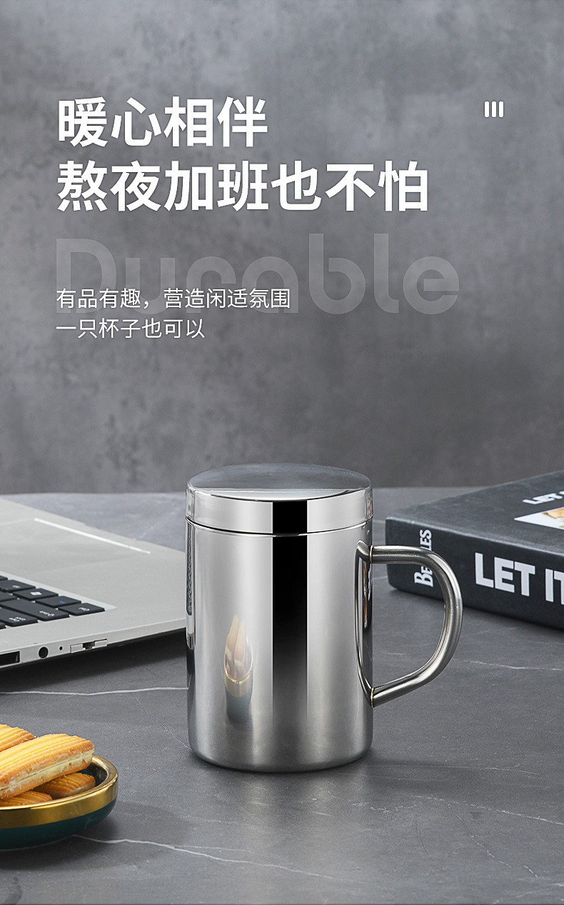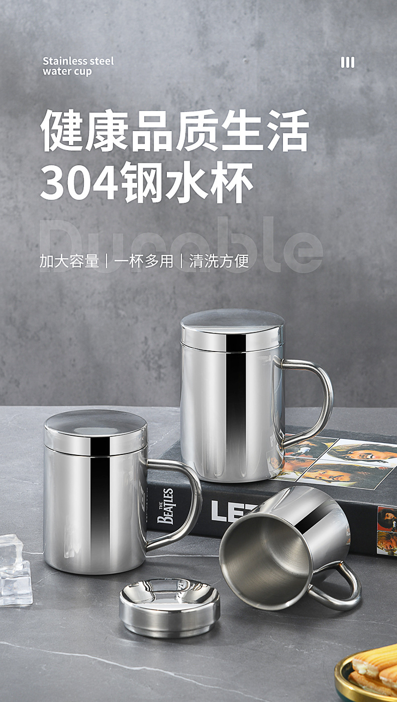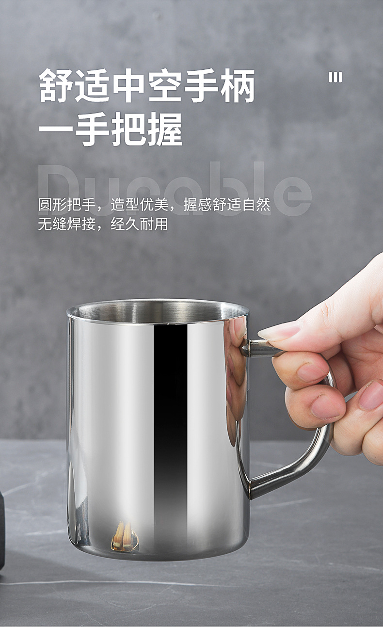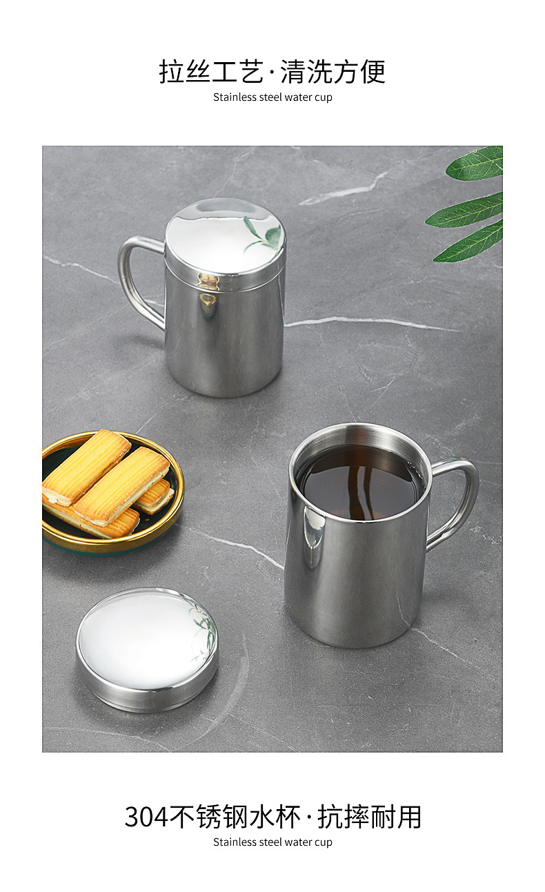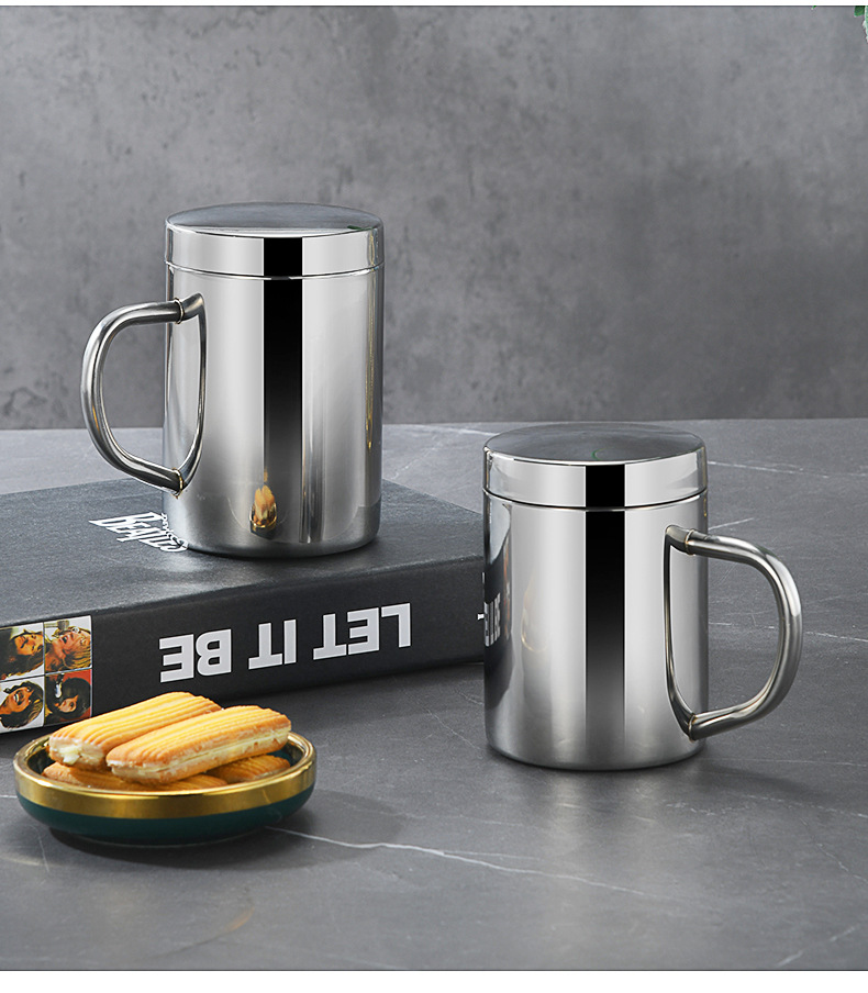 304 뚜껑이있는 스테인레스 스틸 머그 더블 레이어 컵 단열 컵 어린이 학생 물 컵 물 손잡이가있는 커피 컵