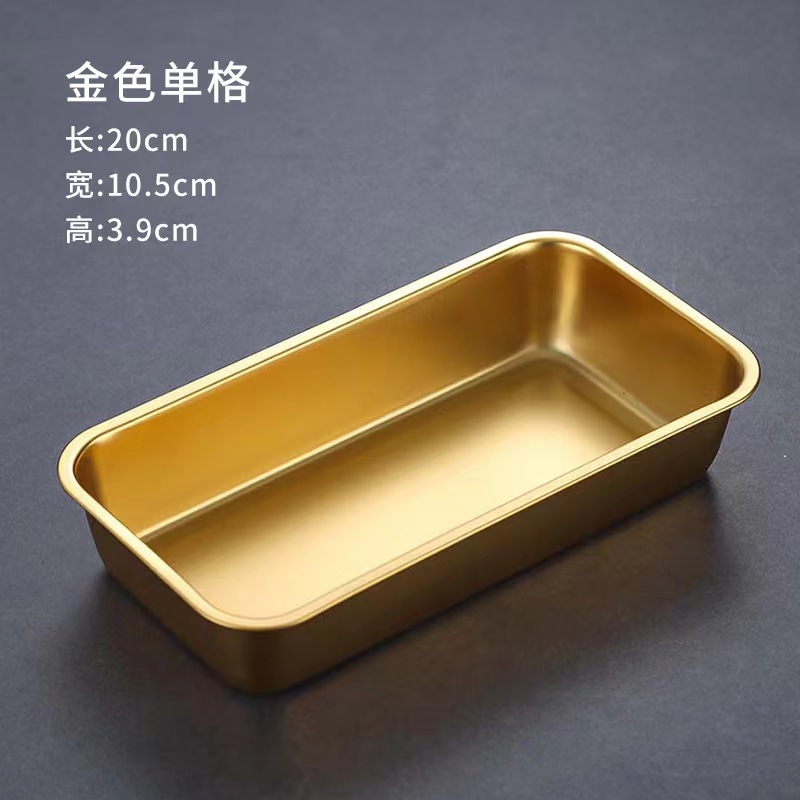 304 스테인레스 한국식 간식 접시 황금 더블 칸 조미료 상자 소스 접시 베이킹 접시 과일 접시 직사각형 차가운 접시스토어 가기