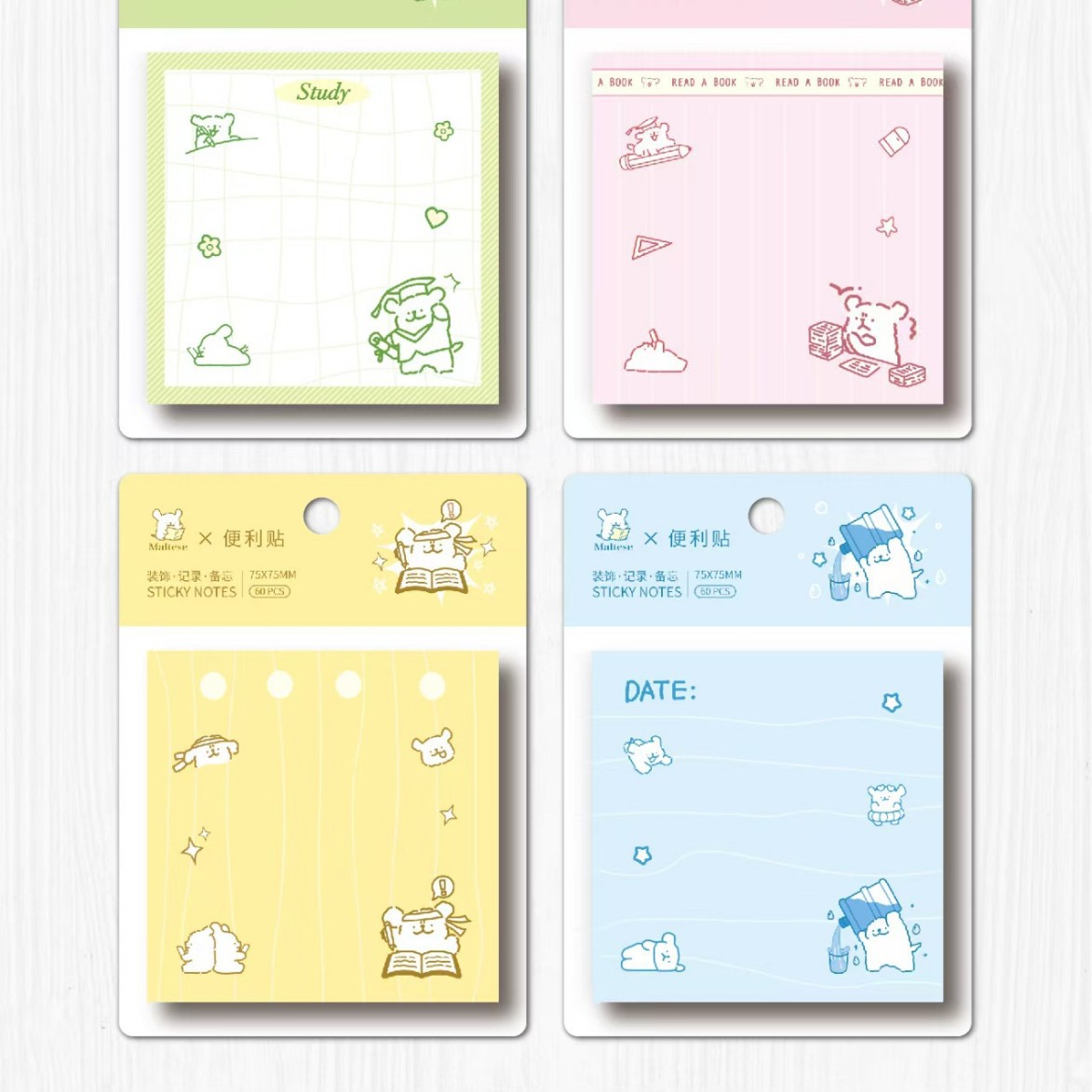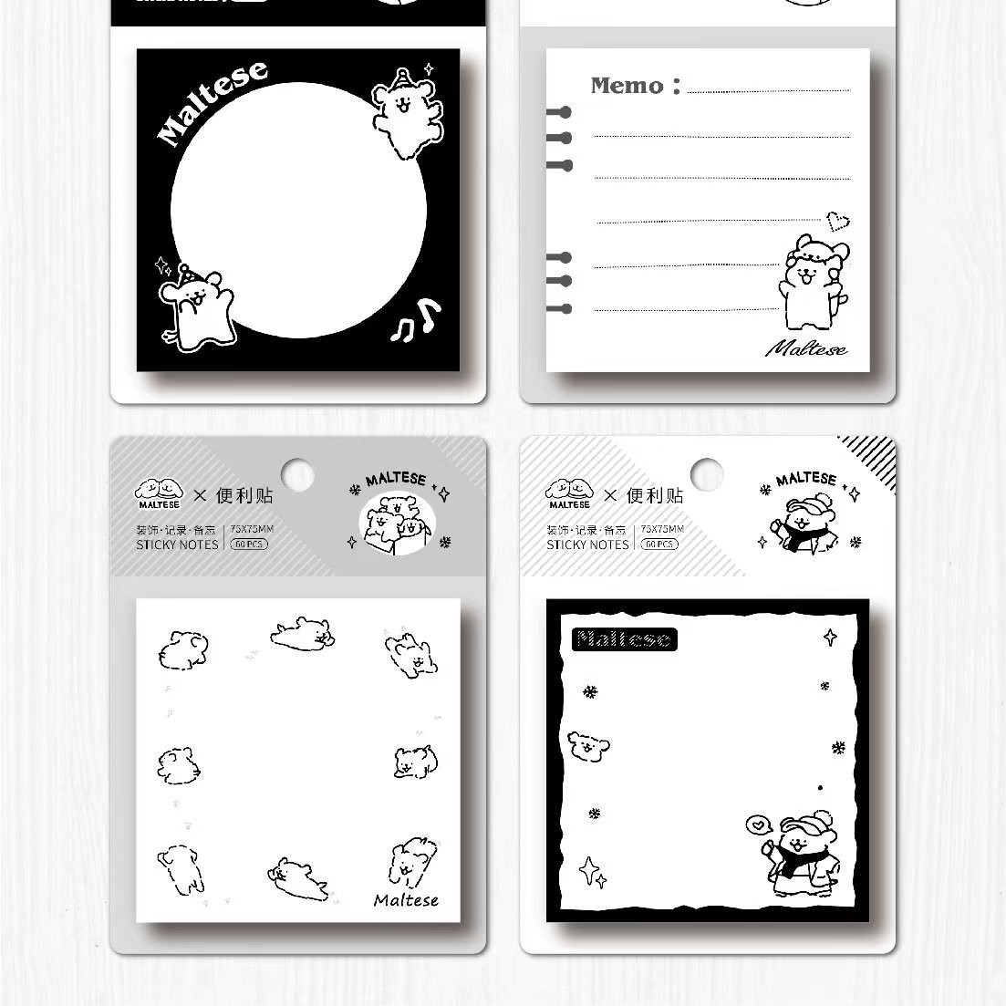 • 정사각형 스티커 메모 - 먀오쿠 촨 메모지 (1세트 4권 1박스 24권)