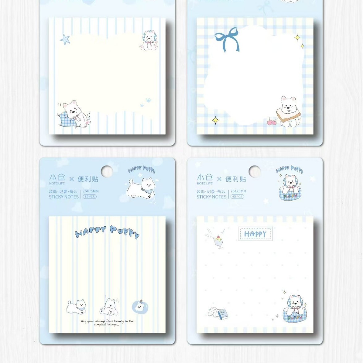 • 정사각형 스티커 메모 - 귀여운 강아지 메모지 (1세트 4권 1박스 24권)