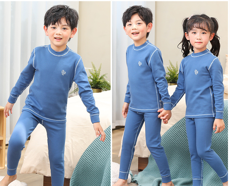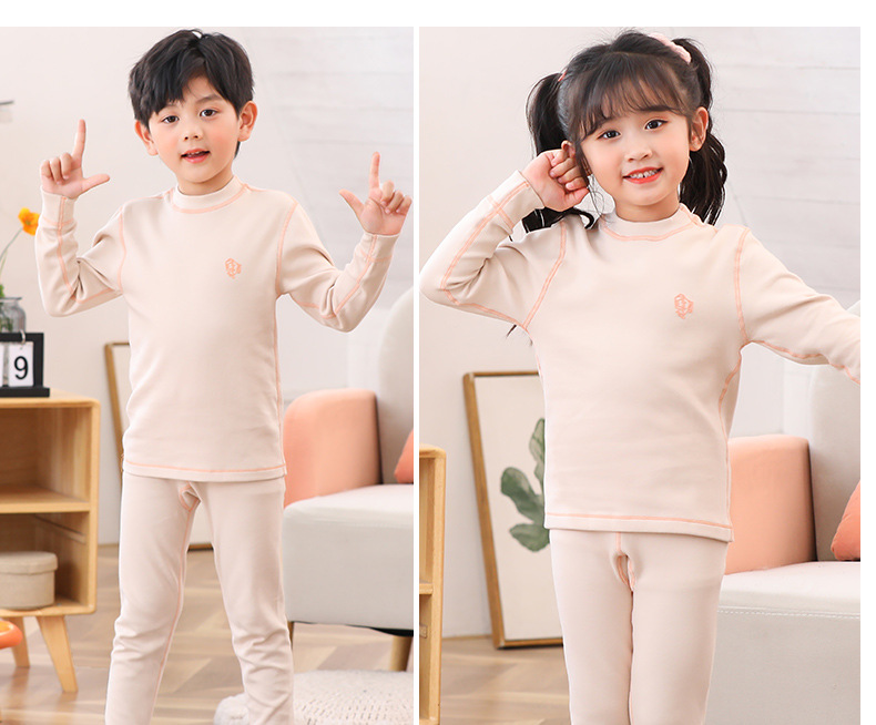 남아용 가을 옷과 긴 바지, 순면 청소년 보온 속옷 세트, 중대형 여아용 부드러운 벨벳 중간 칼라 면 스웨터 잠옷스토어 가기