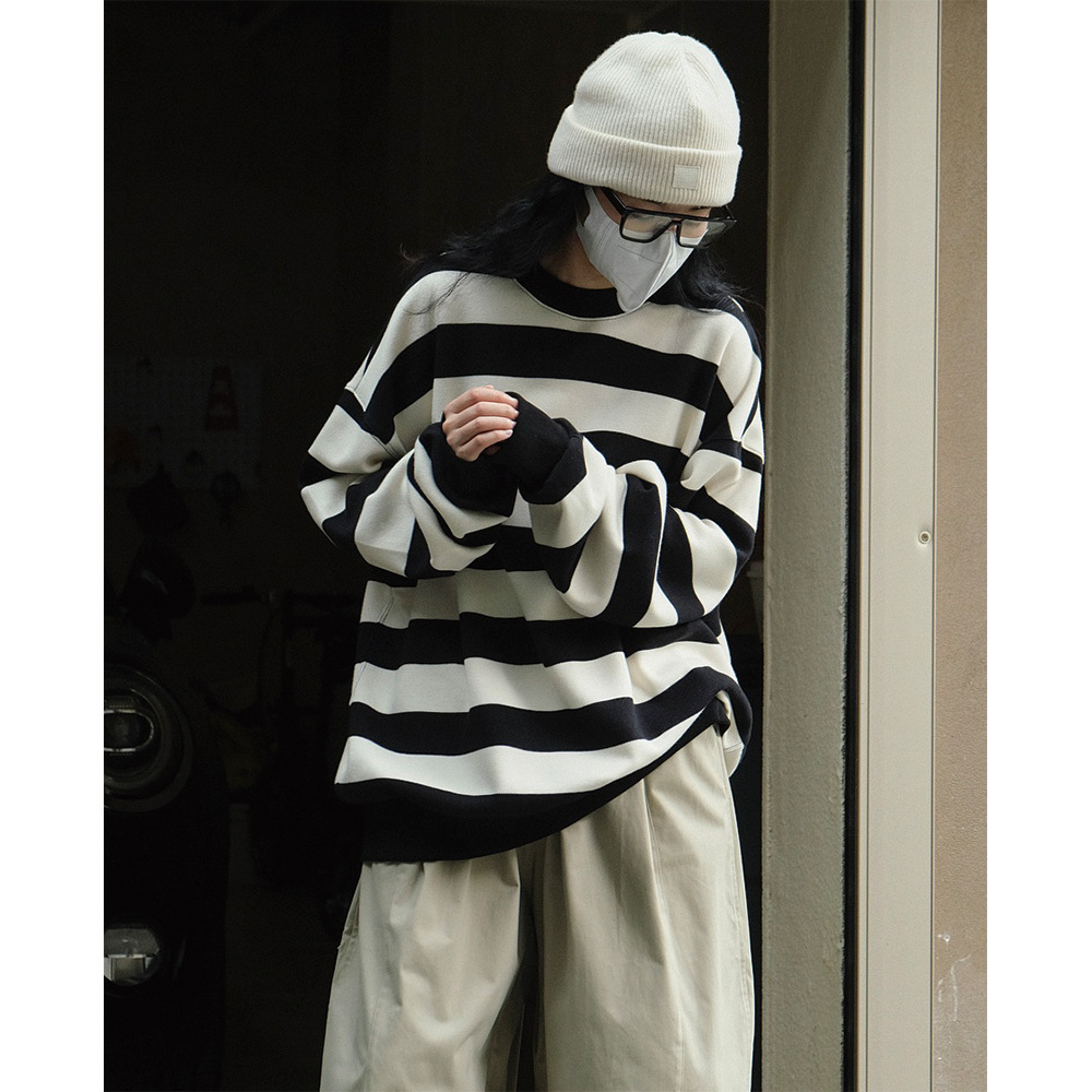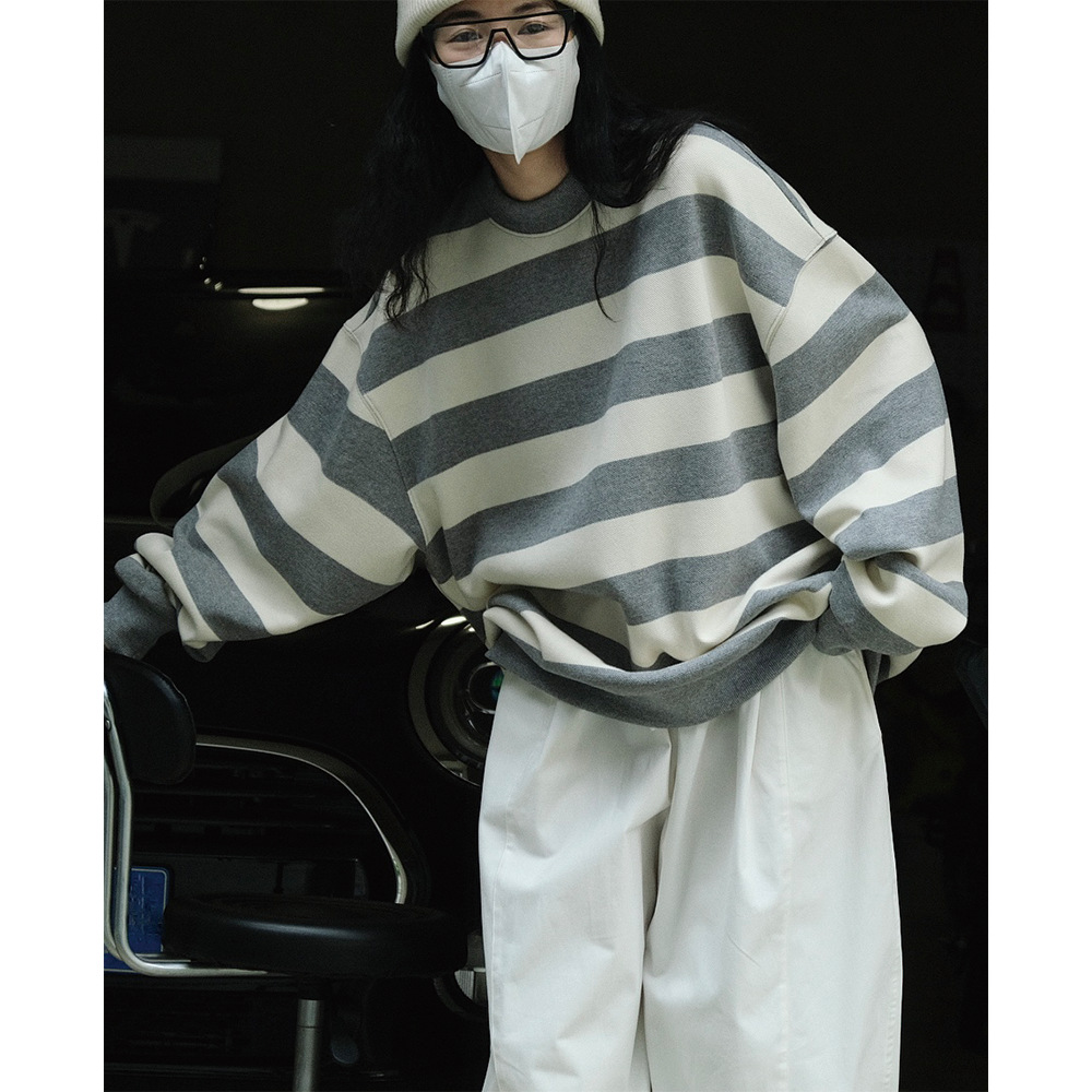 가을 새로운 한국식 캐주얼 스포츠 스타일 컬러 스트라이프 라운드 넥 스웻셔츠 느슨한 프로필 캐주얼 슬림 핏 탑 여성스토어 가기