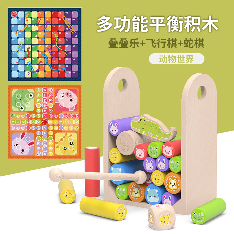 动物平衡叠叠高儿童早教益智玩具闯关挑战积木拼搭堆叠木质玩具早教亲子互动积木玩具儿童木制动物平衡船俄罗斯方块叠叠高叠叠乐飞行棋蛇棋棋类桌游
