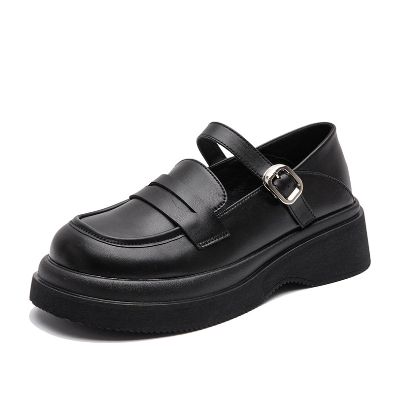 여성용 정품 가죽 로퍼 두꺼운 밑창 2024 봄 신작 일본식 라운드 투 여성용 소형 가죽 신발 여학생을위한 다용도 신발스토어 가기