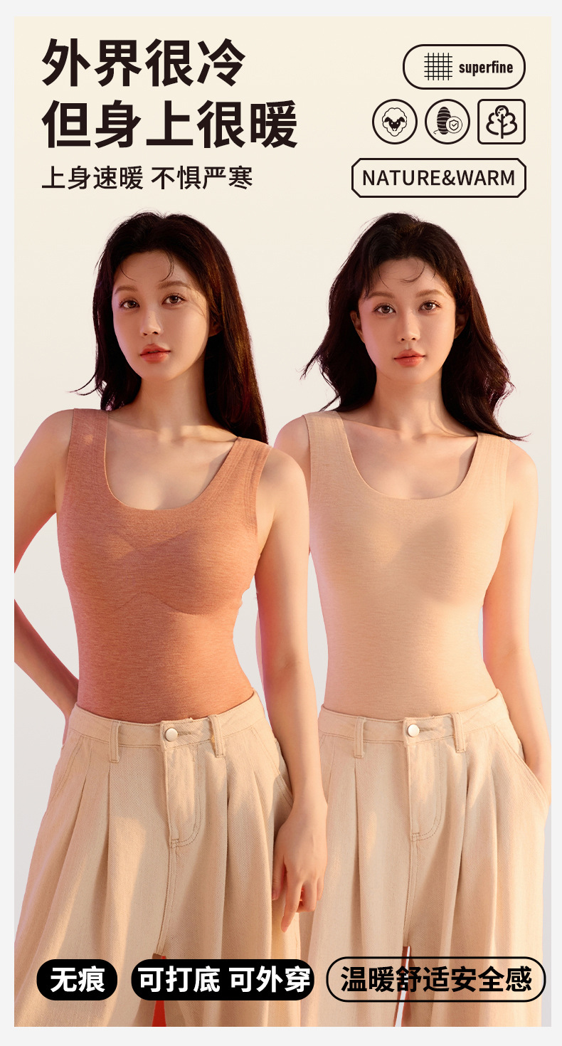 가을과 겨울 새로운 울 실크 가슴 패드 여성용 양털 따뜻한 조끼 민소매 겨울 샌딩 난방 속옷스토어 가기