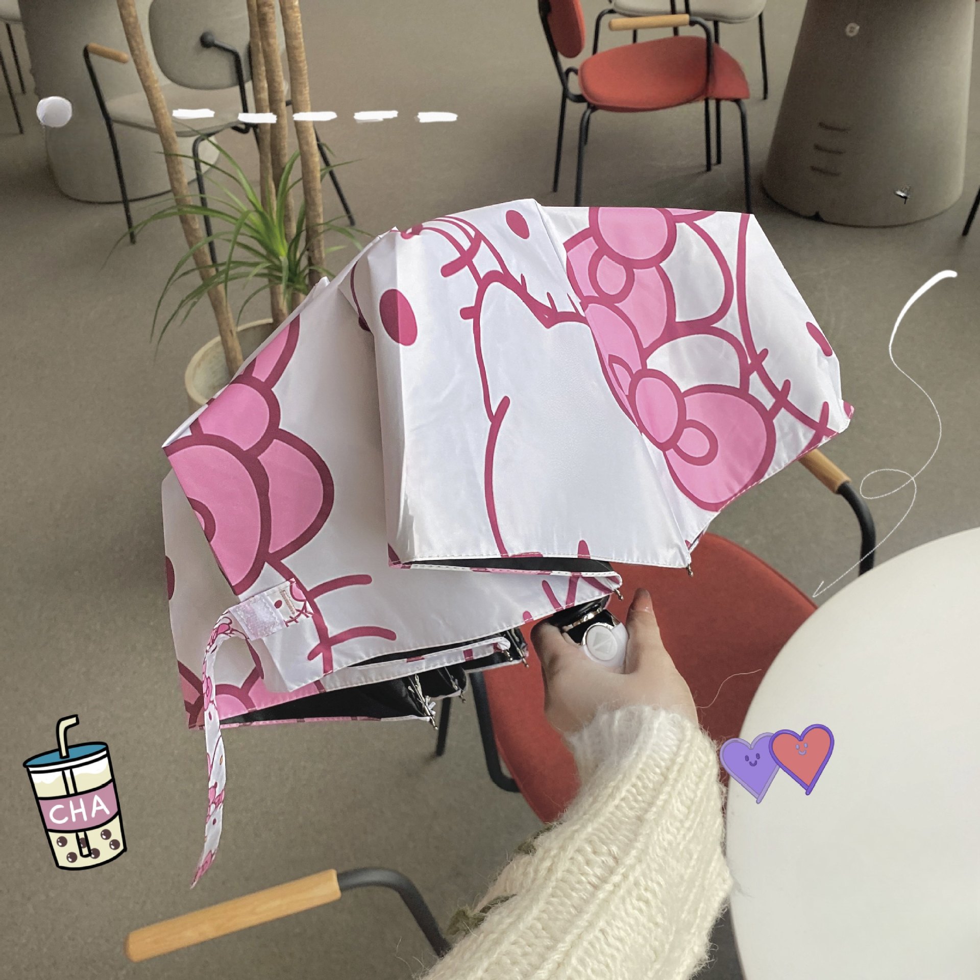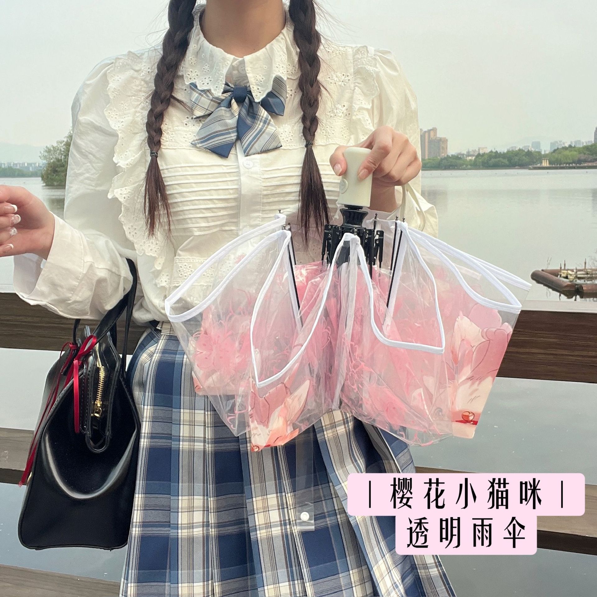 • 벚꽃 고양이 자동 우산-두꺼운 우산 표면