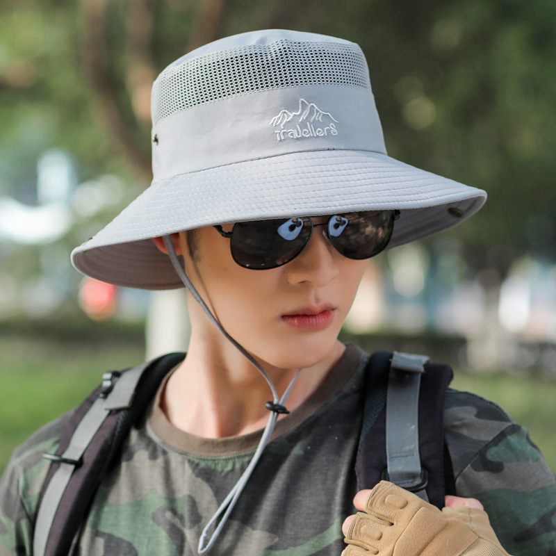 남자 모자 여름 통기성 어부 모자 차양 모자 여행 등산 야외 낚시 분지 모자 사이클링 썬 그물 모자스토어 가기