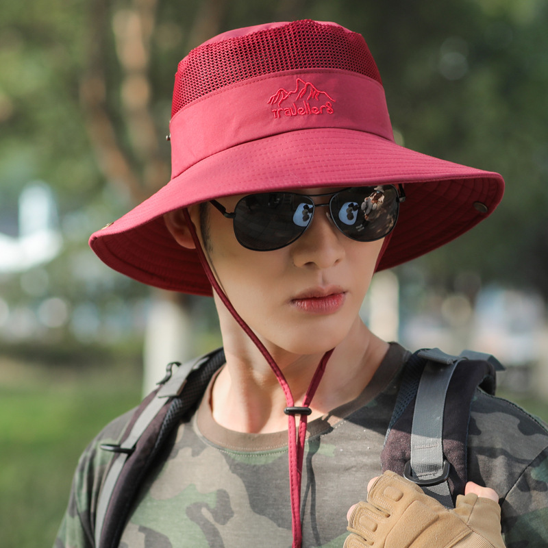 남자 모자 여름 통기성 어부 모자 차양 모자 여행 등산 야외 낚시 분지 모자 사이클링 썬 그물 모자