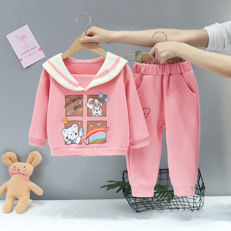여아 스포츠 세트 웨스턴 스타일 2023 봄과 가을 새로운 아기 소녀 유행 한국 스타일 어린이 가을 투피스 유행 세트스토어 가기