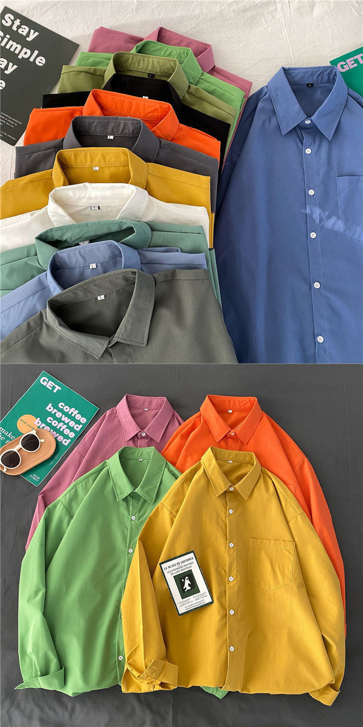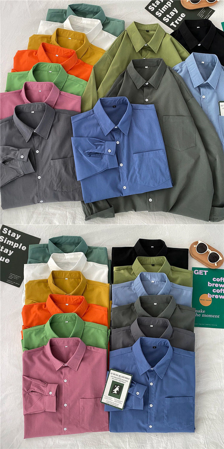 봄과 가을 2022 새로운 한국어 느슨한 플러스 사이즈 여자의 단색 셔츠 200 진 조커 긴 소매 셔츠 에