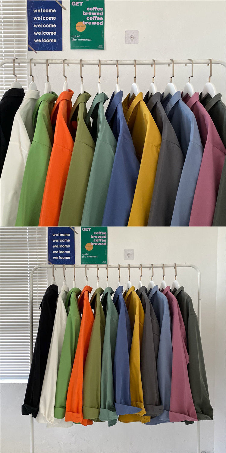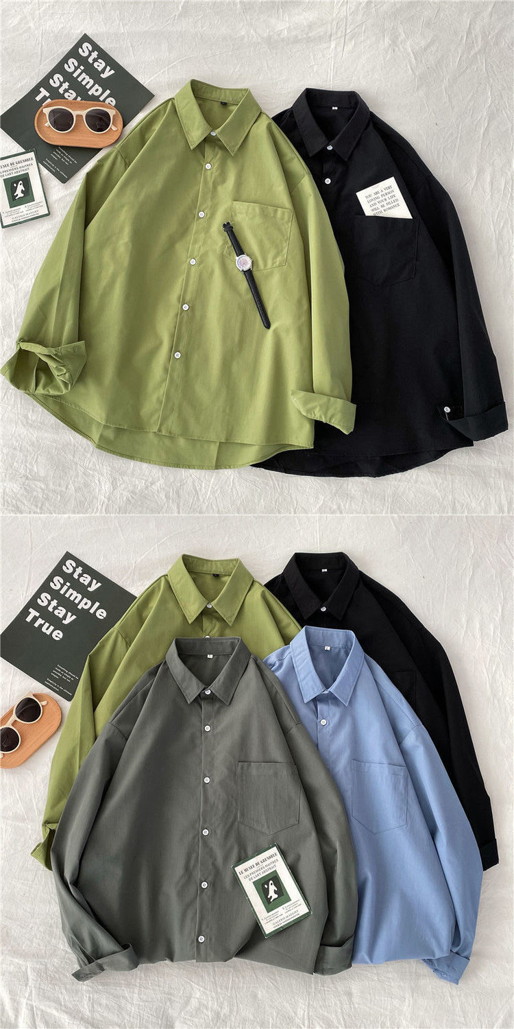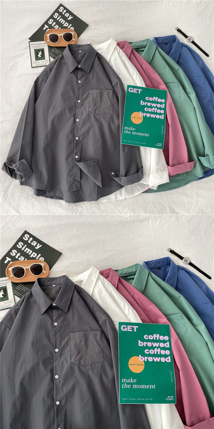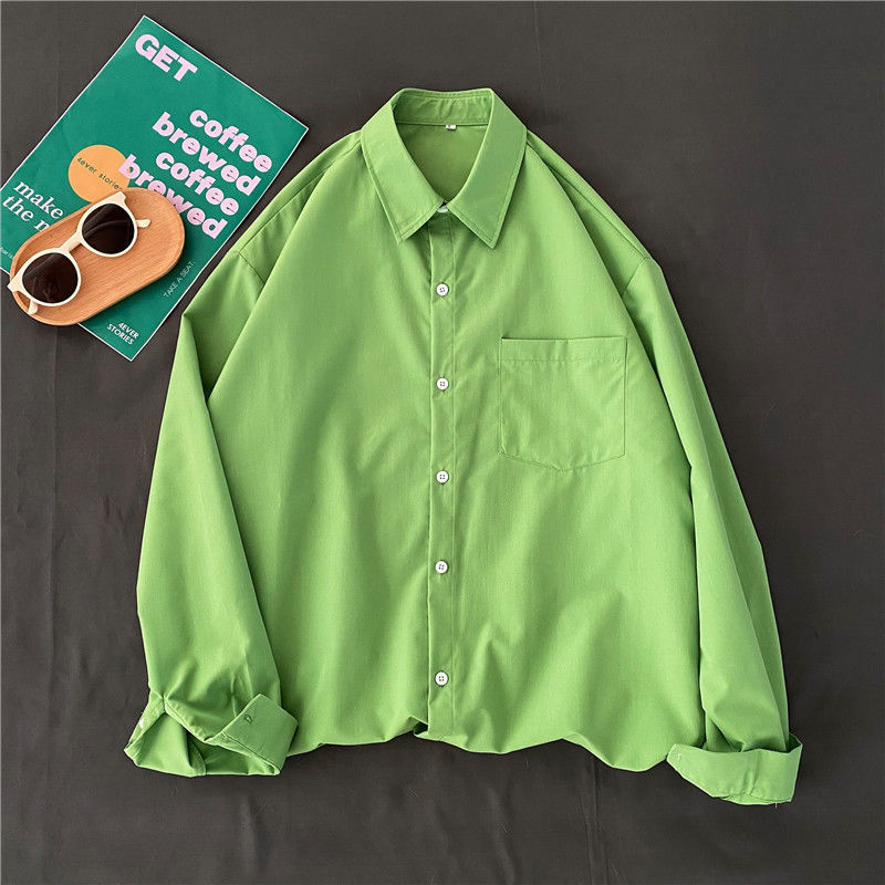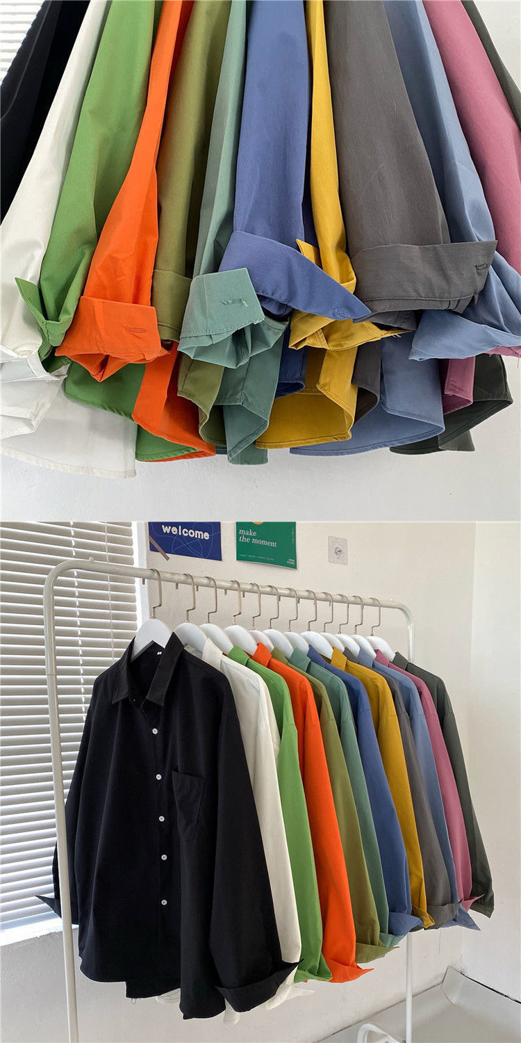 봄과 가을 2022 새로운 한국어 느슨한 플러스 사이즈 여자의 단색 셔츠 200 진 조커 긴 소매 셔츠 에스토어 가기