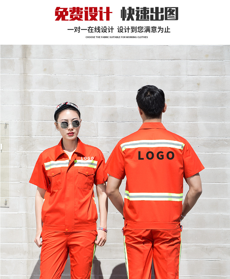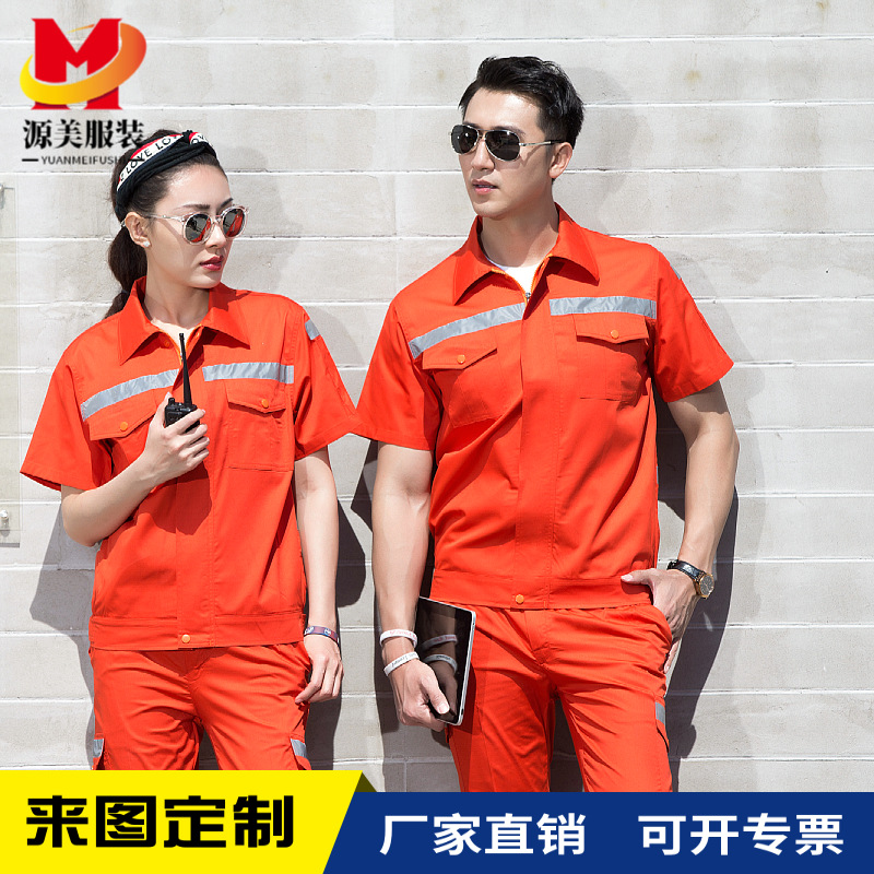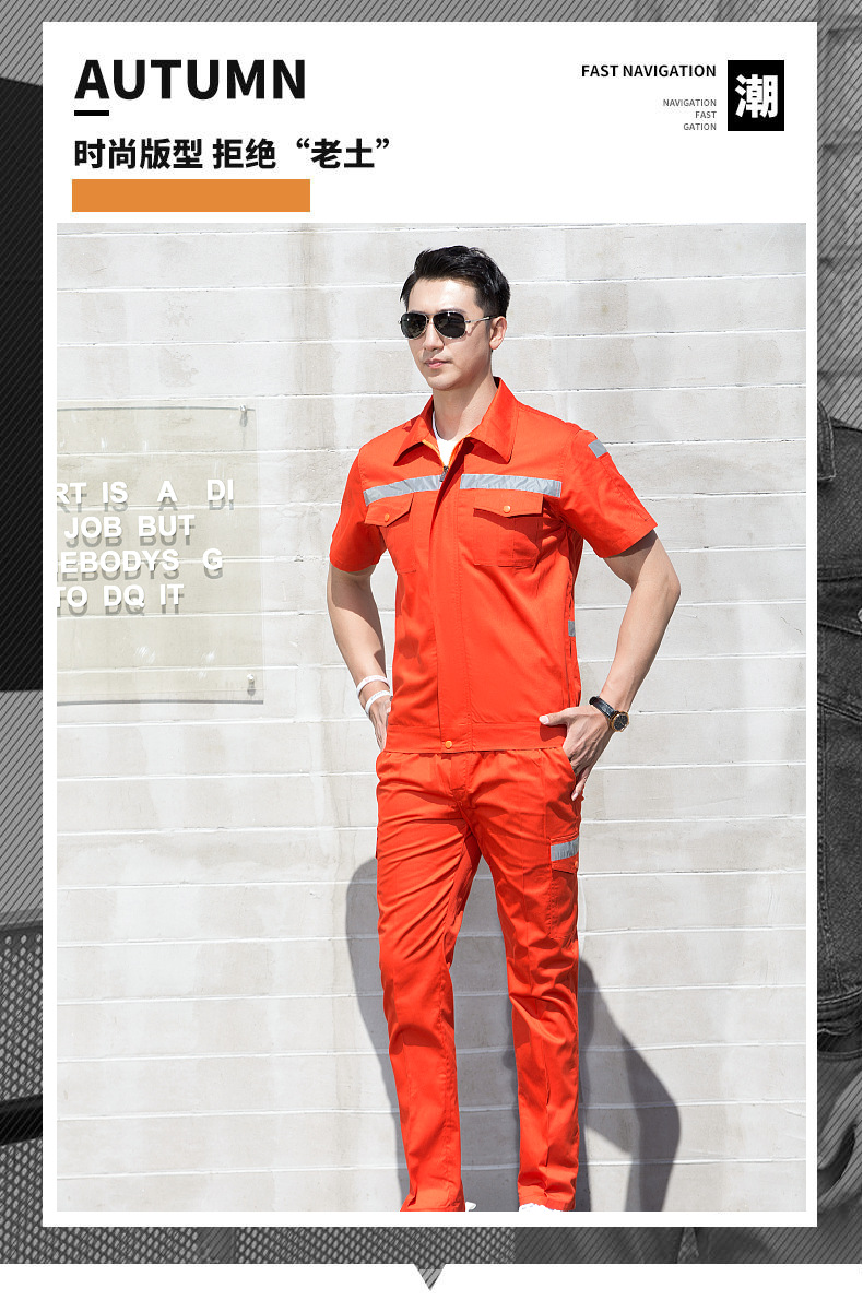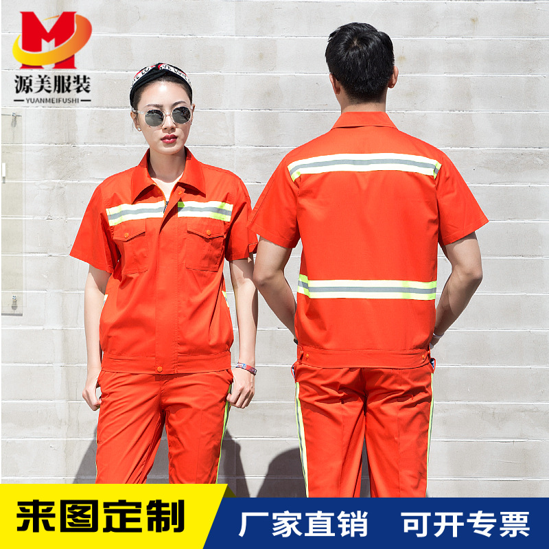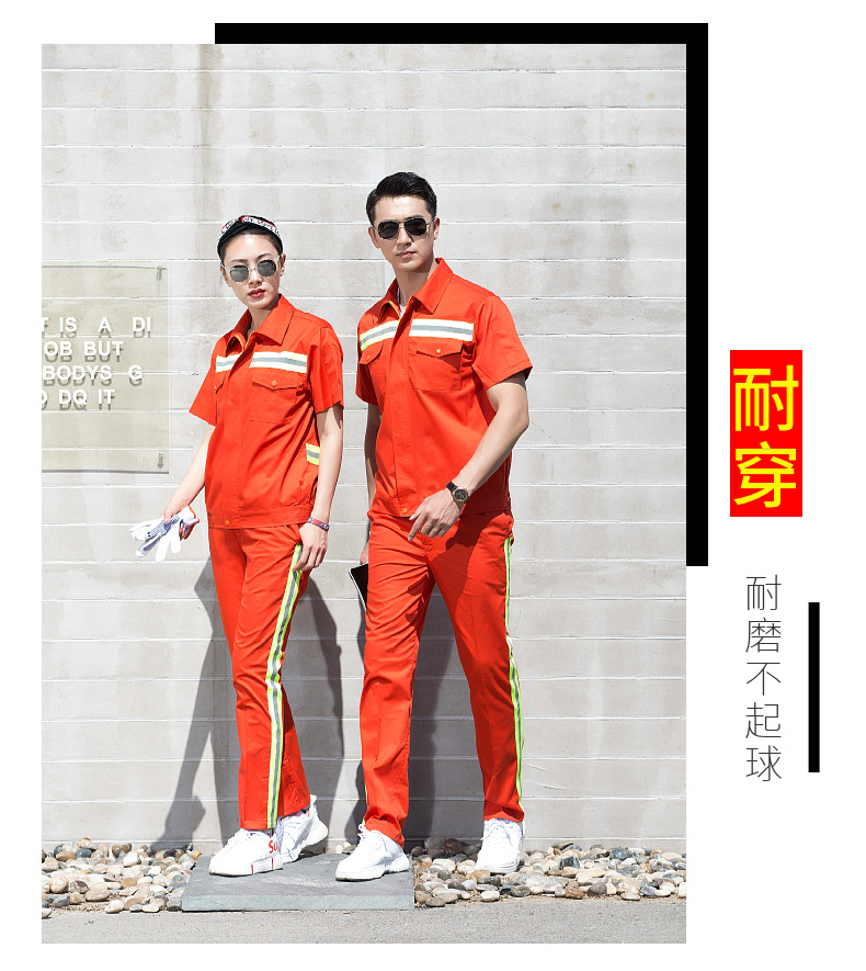 여름 위생 노동자 바지 반팔 세트 주황색 탑 반사 스트립 건설 현장 노동 보호 의류 여름 로고스토어 가기