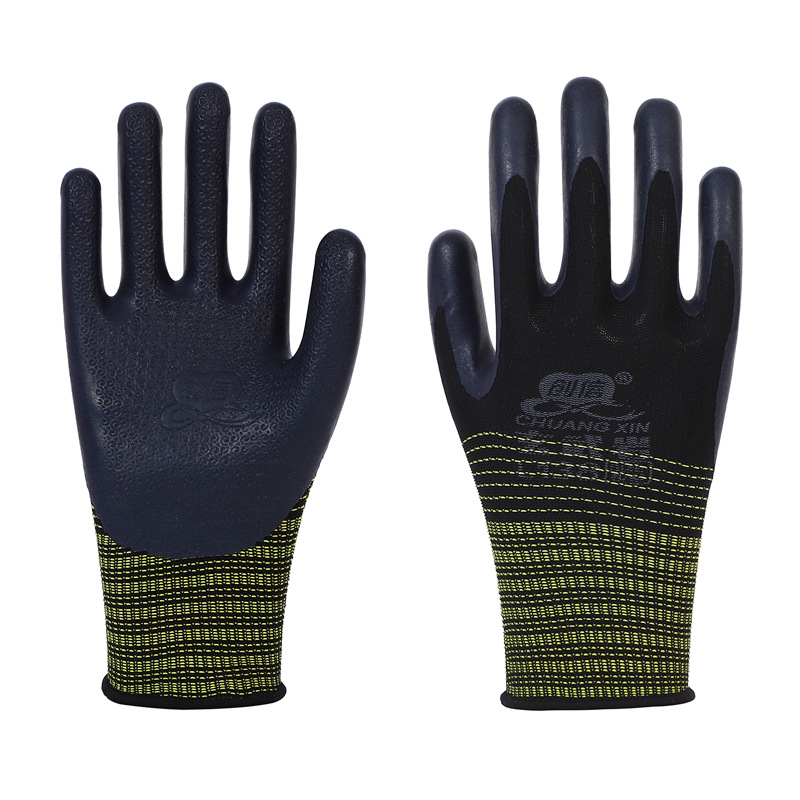 Chuangxin L138 현무암 라텍스 양각 통기성 장갑 미끄럼 방지 나일론 고무 장갑 건설 현장