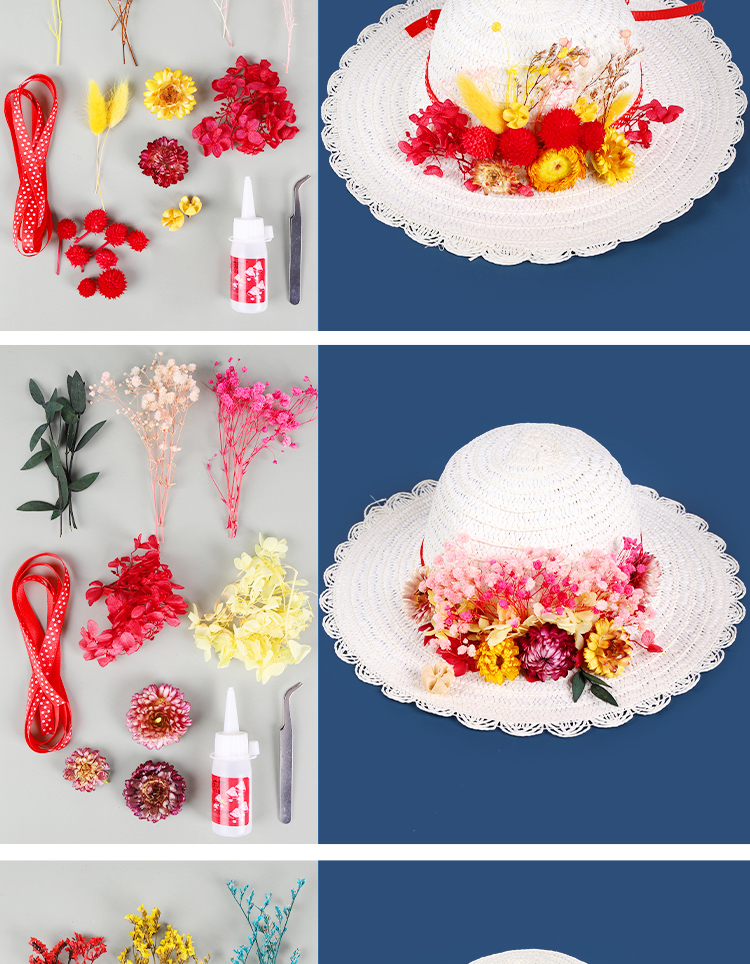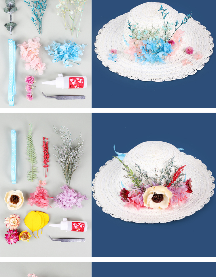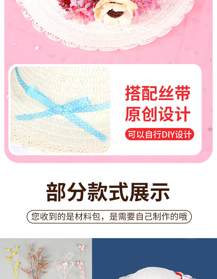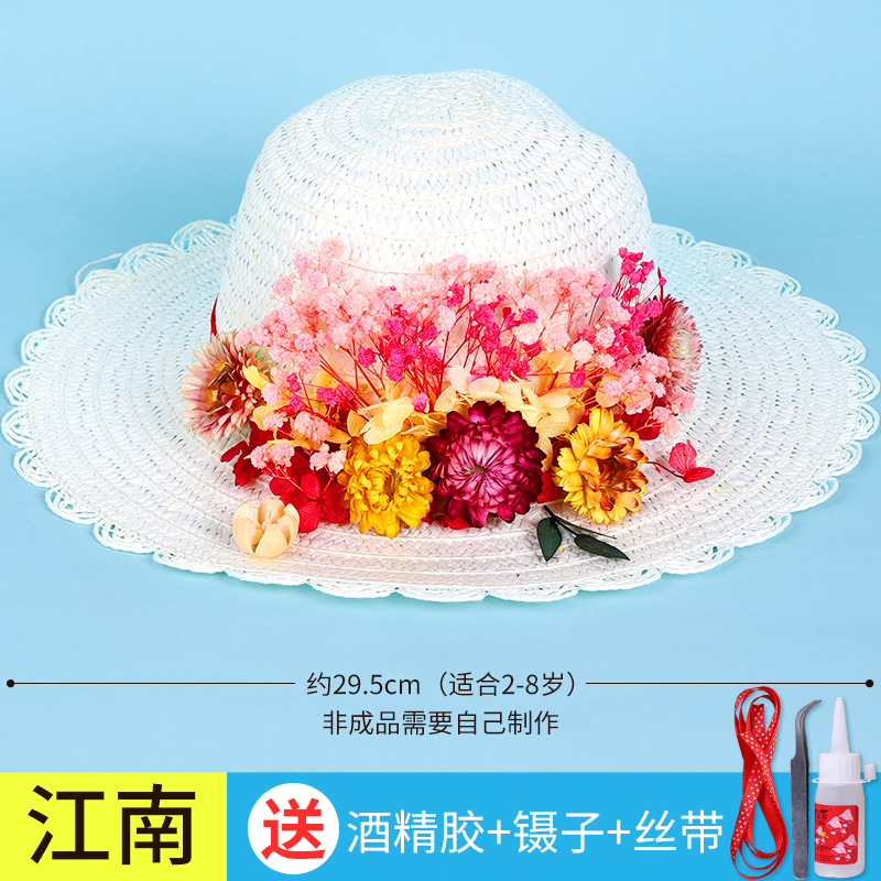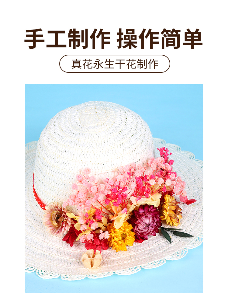 부모와 자식 활동 낙서 밀짚모자 성인 어린이 DIY 말린 꽃 밀짚모자 손수 만들기 재료 패키지 여름 스승의 날스토어 가기