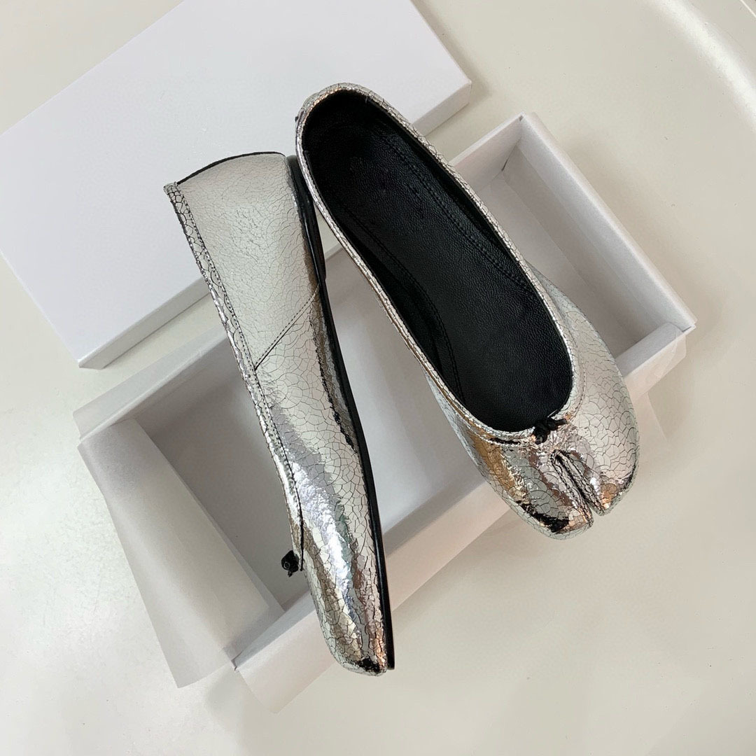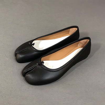 틈새 순수 오리지널 mm6 Margiela tabi 돼지의 발 발가락 신발 가죽 얕은 입 편안한 캐주얼 플랫 부드러운 가죽 단독 신발
