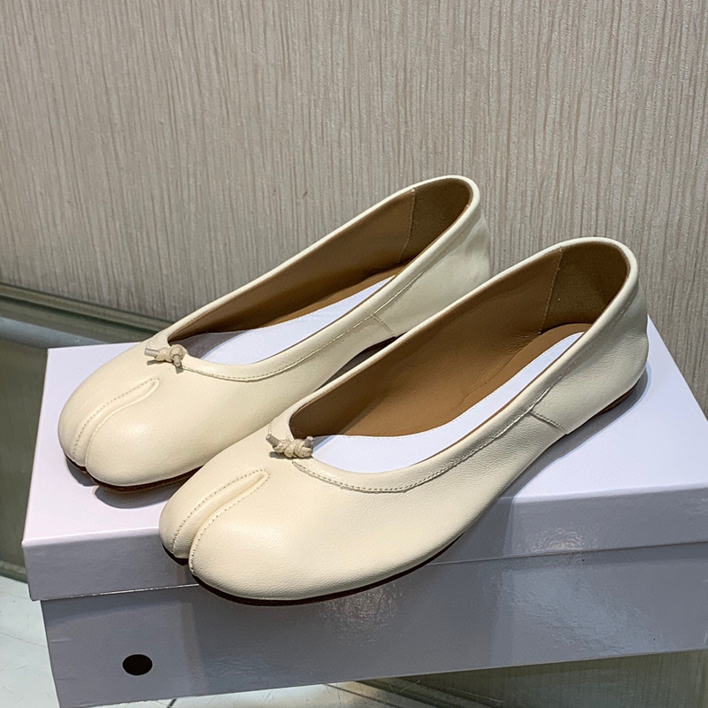 틈새 순수 오리지널 mm6 Margiela tabi 돼지의 발 발가락 신발 가죽 얕은 입 편안한 캐주얼 플랫 부드러운 가죽 단독 신발스토어 가기