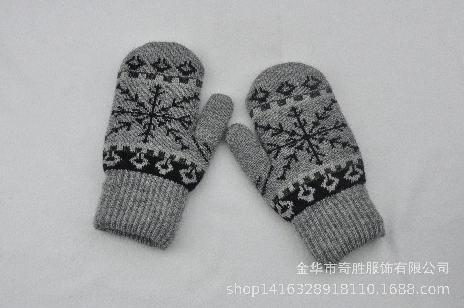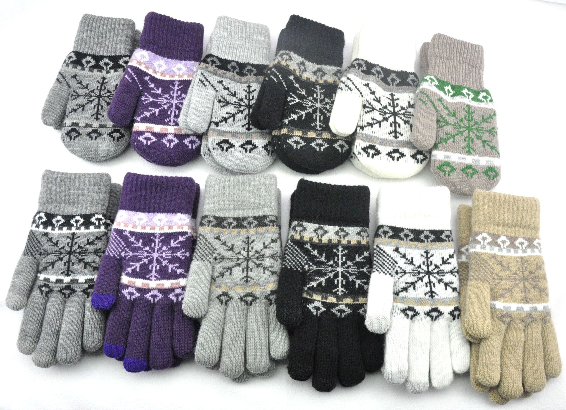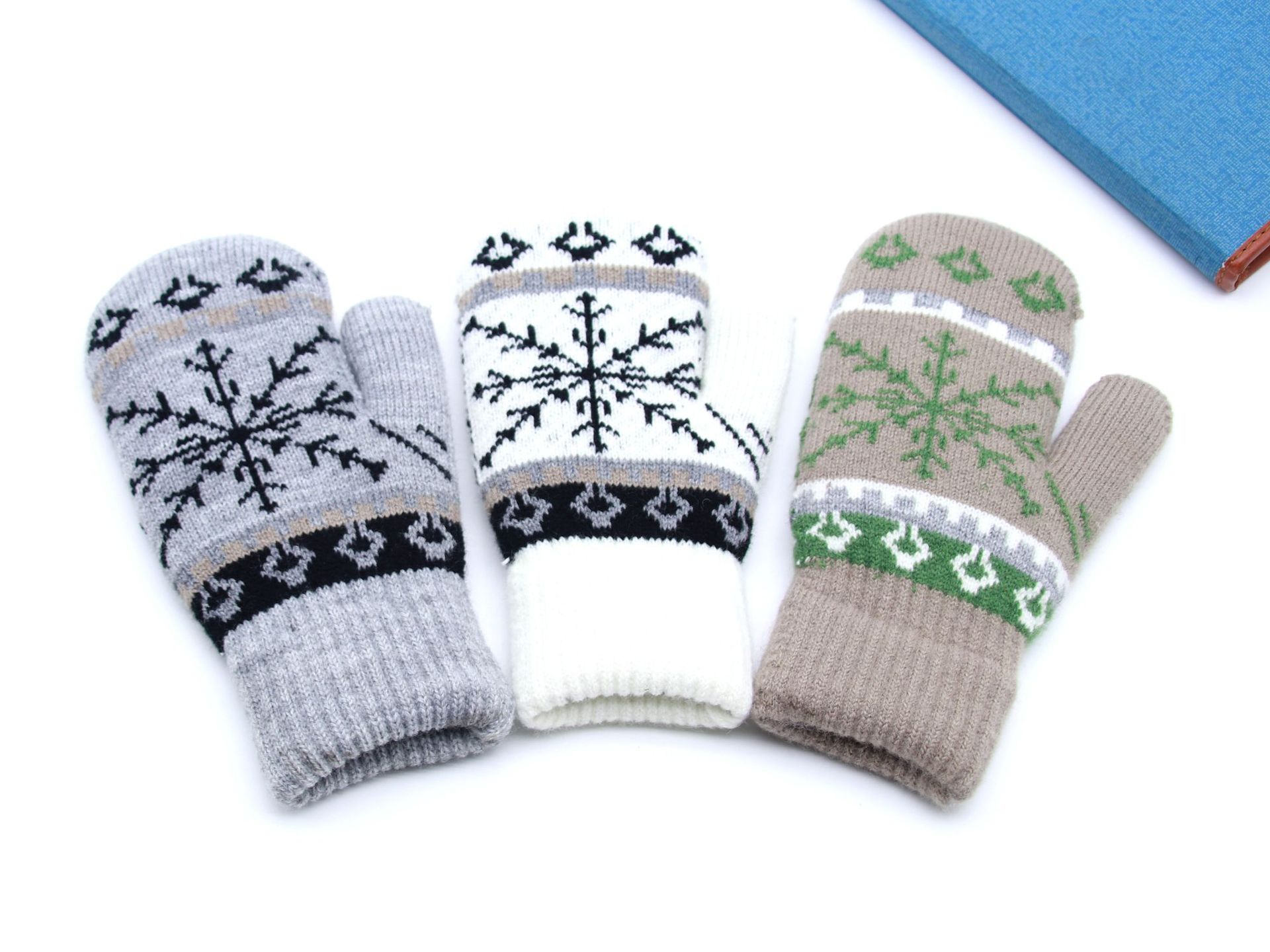 성인 여자의 귀여운 손가락 가방 장갑 겨울 기모 여분의 두꺼운 눈송이 자카드 니트 울 장갑