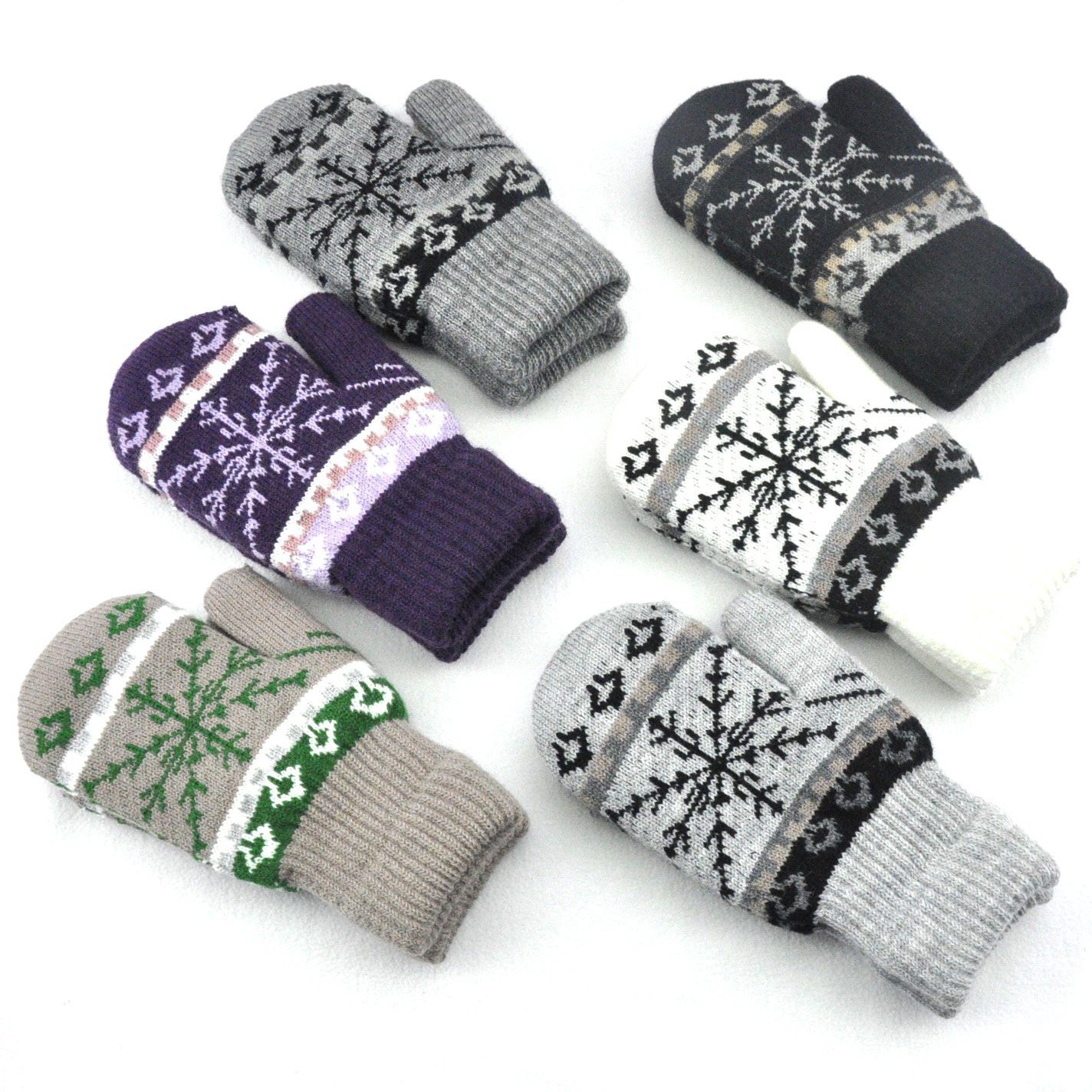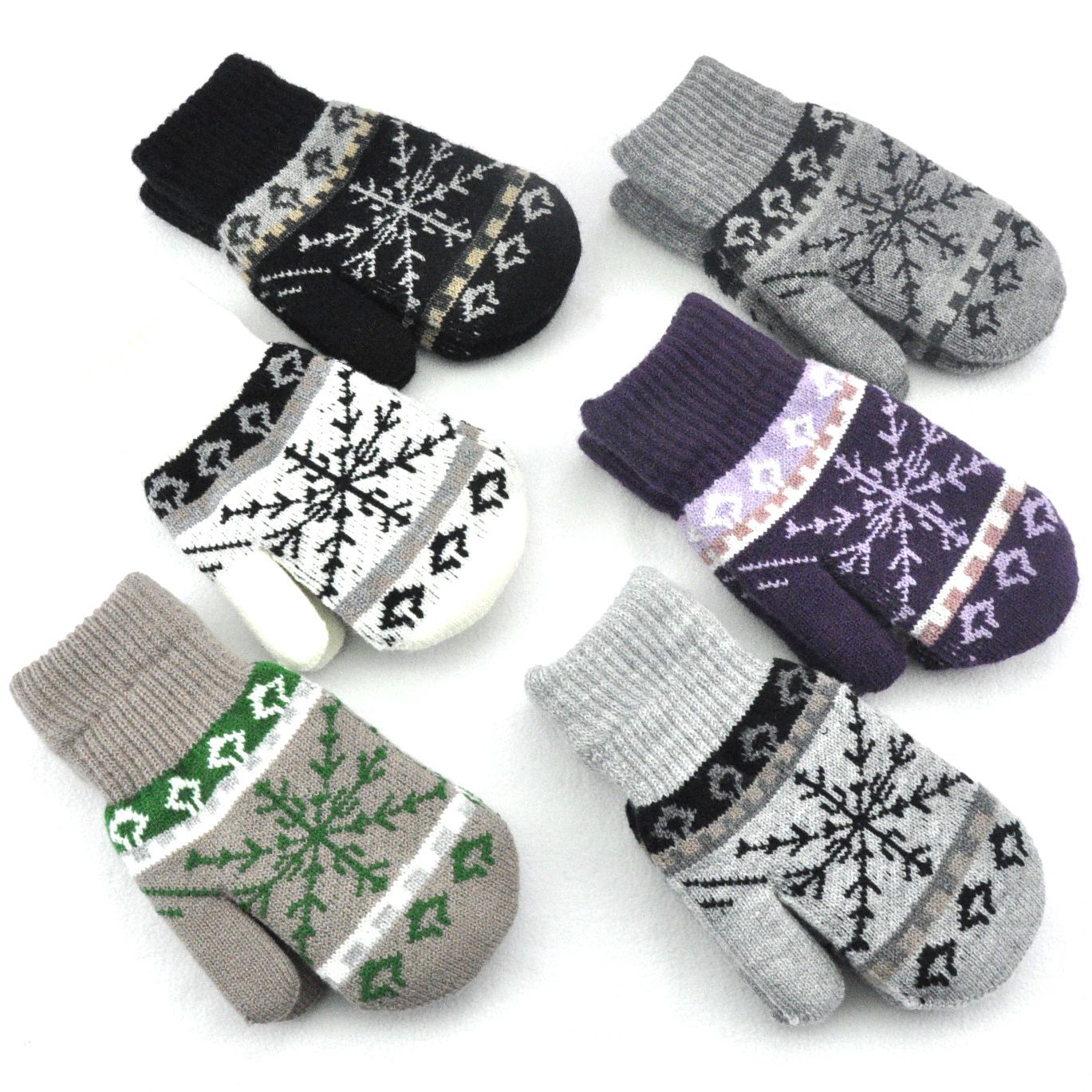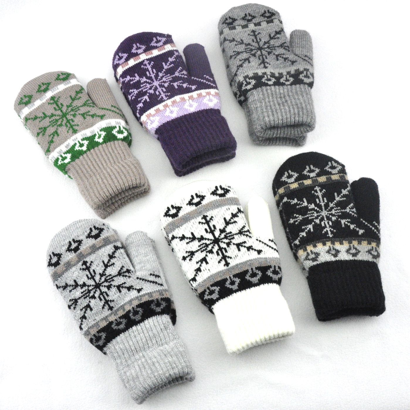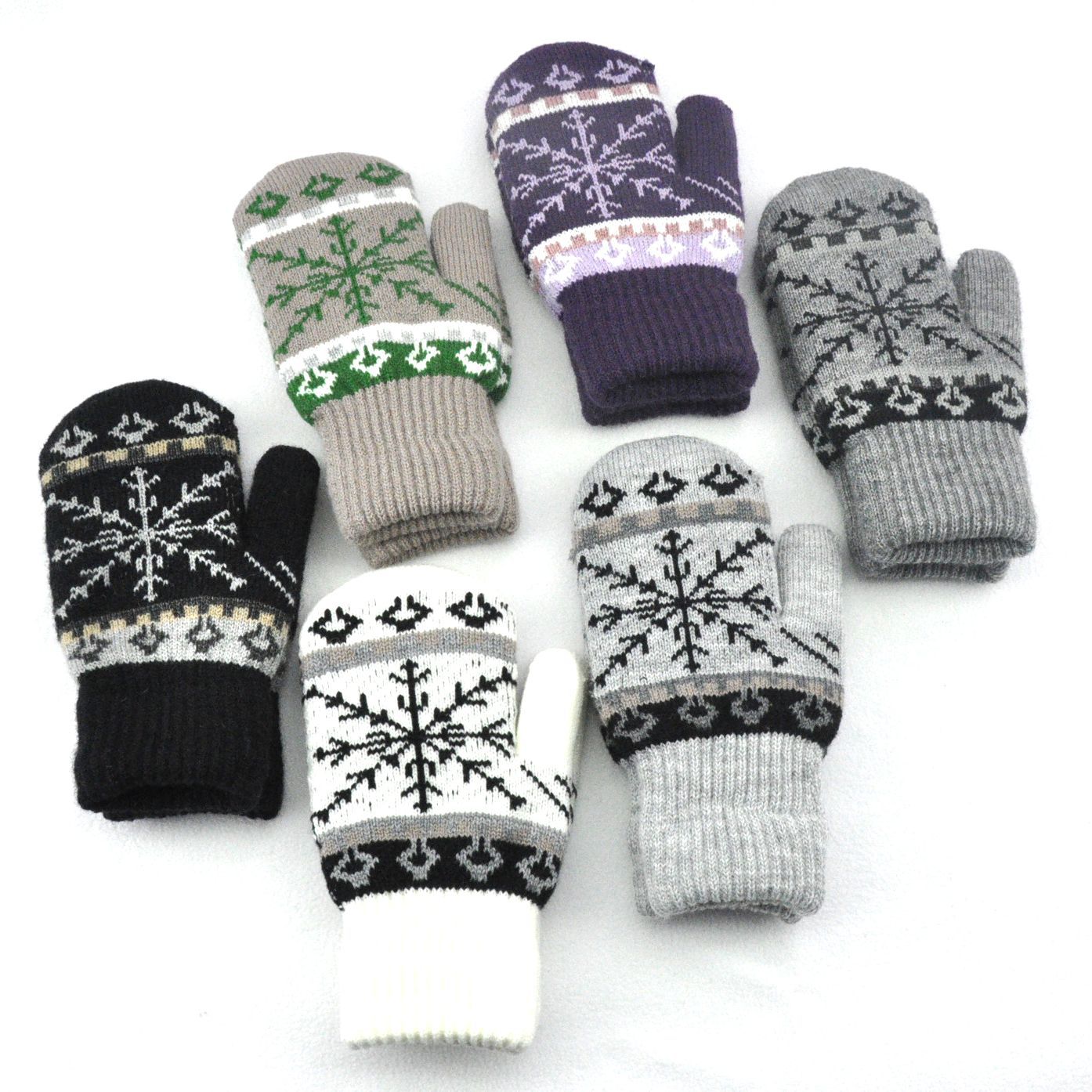 성인 여자의 귀여운 손가락 가방 장갑 겨울 기모 여분의 두꺼운 눈송이 자카드 니트 울 장갑